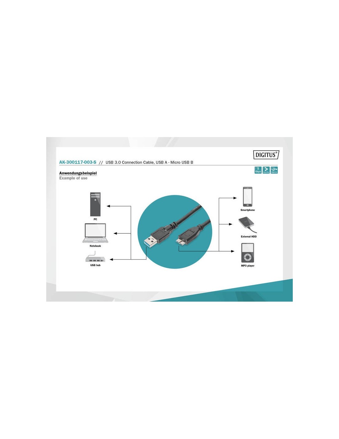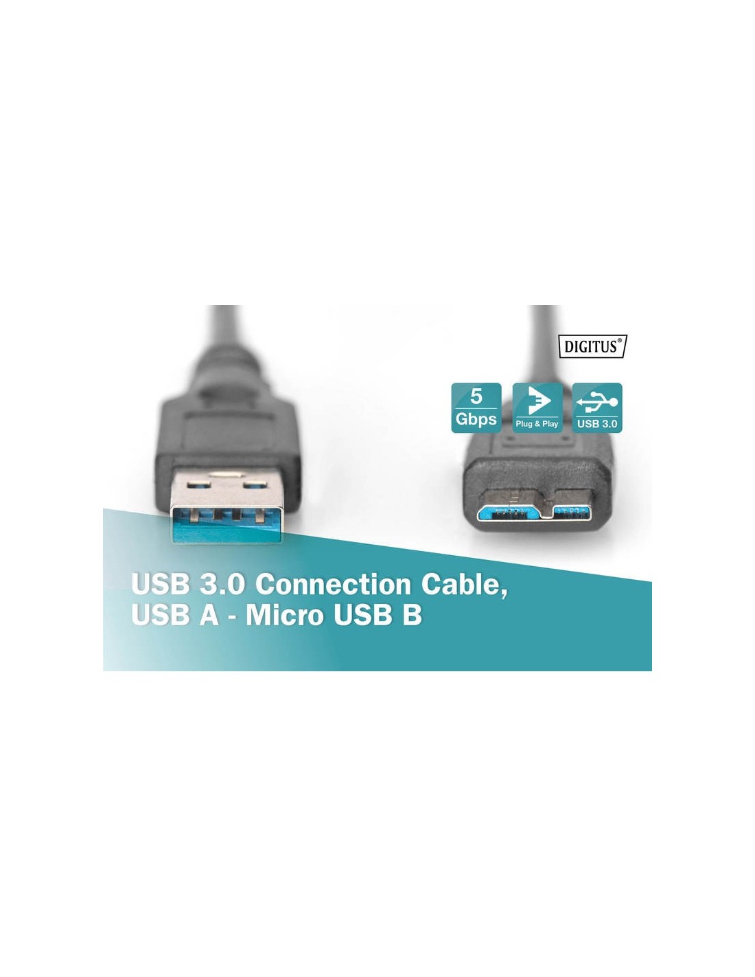 Cable de conexión USB 3.0 para la conexión de un concentrador USB o dispositivo USB (con B micro hembra) al puerto USB del PC, velocidad de transferencia de datos de hasta 5000 Mbps (Súper Velocidad)