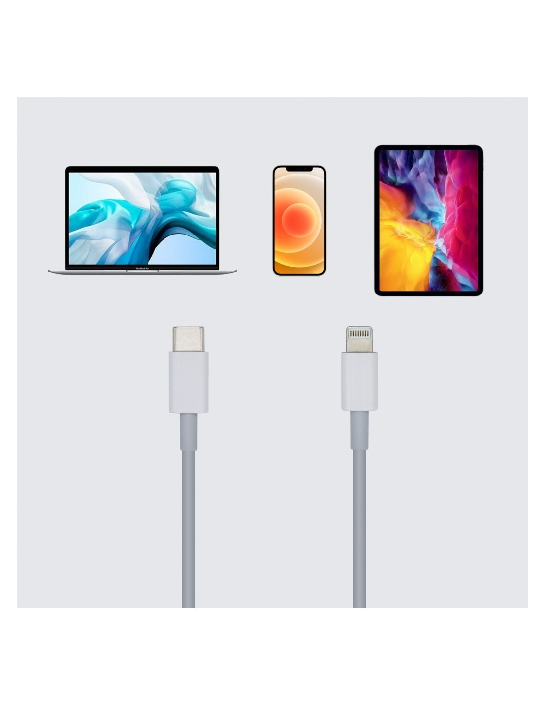 Cable LIGHTNING con conector LIGHTNING macho en un lado y conector USB-C macho en el otro.