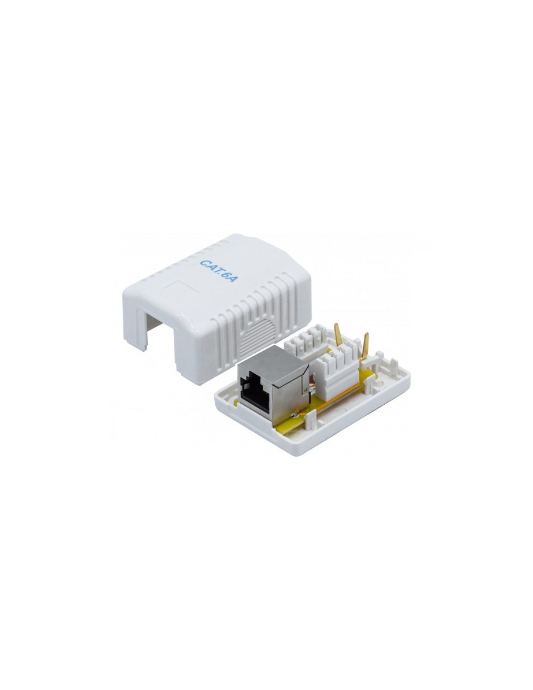 Caja para montaje de una toma CAT hembra RJ45. 6A blindado. Ideal para instalaciones sin zócalo o en el borde del zócalo.