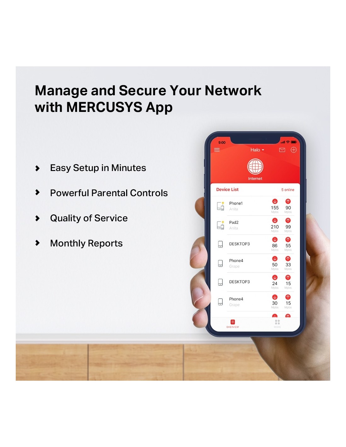 Fácil configuración y control. Configura tu sistema Halo en pocos minutos con la App Mercusys.