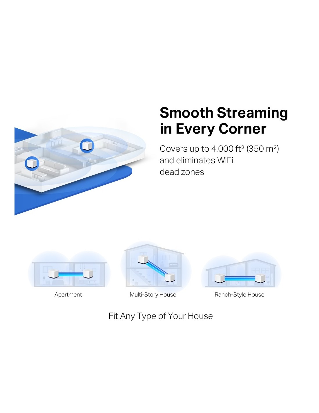 Cobertura en toda la casa. Elimina las zonas sin Wi-Fi de tu hogar cubriendo hasta 350m² con alta estabilidad y sin cortes.