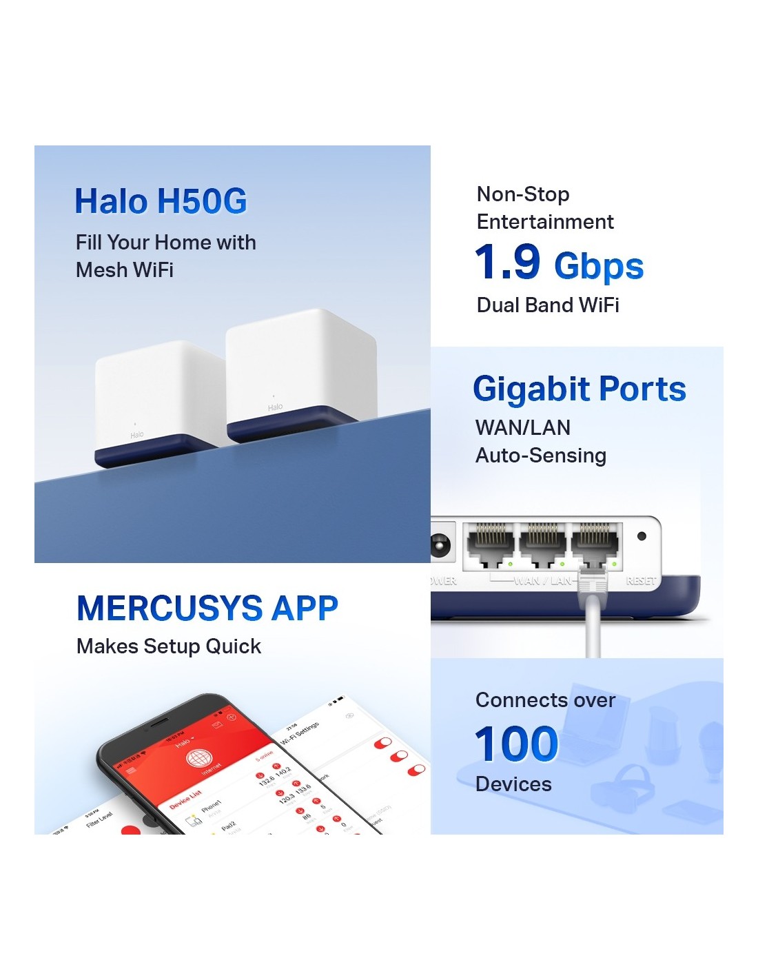 14 días de devoluciónH50G(Pack de 2), AC1900 Mesh Wi-Fi, Doble Banda, Cobertura hasta 350 m², 3× Gigabit Puerto por Unidad, MU-MIMO, Beamforming, Control Parental, Smart Connect