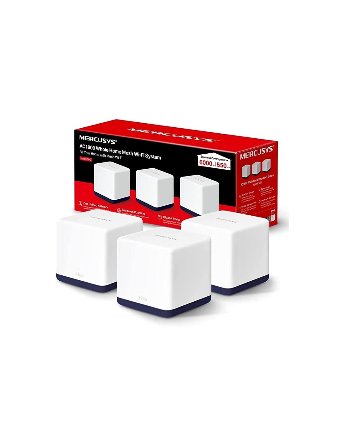 14 días de devoluciónH50G(Pack de 3), AC1900 Mesh Wi-Fi, Doble Banda, Cobertura hasta 550 m², 3× Gigabit Puerto por Unidad, MU-MIMO, Beamforming, Control Parental, Smart Connect