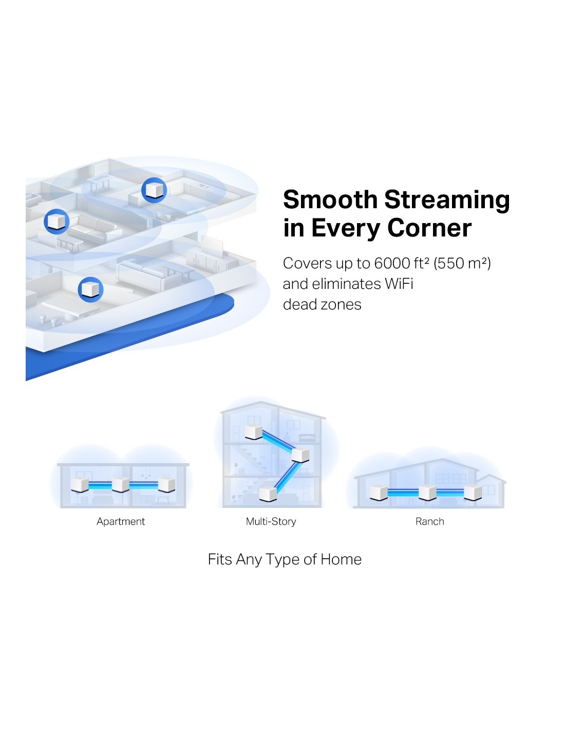 Cobertura en toda la casa. Elimina las zonas sin Wi-Fi de tu hogar cubriendo hasta 550m² con alta estabilidad y sin cortes.
