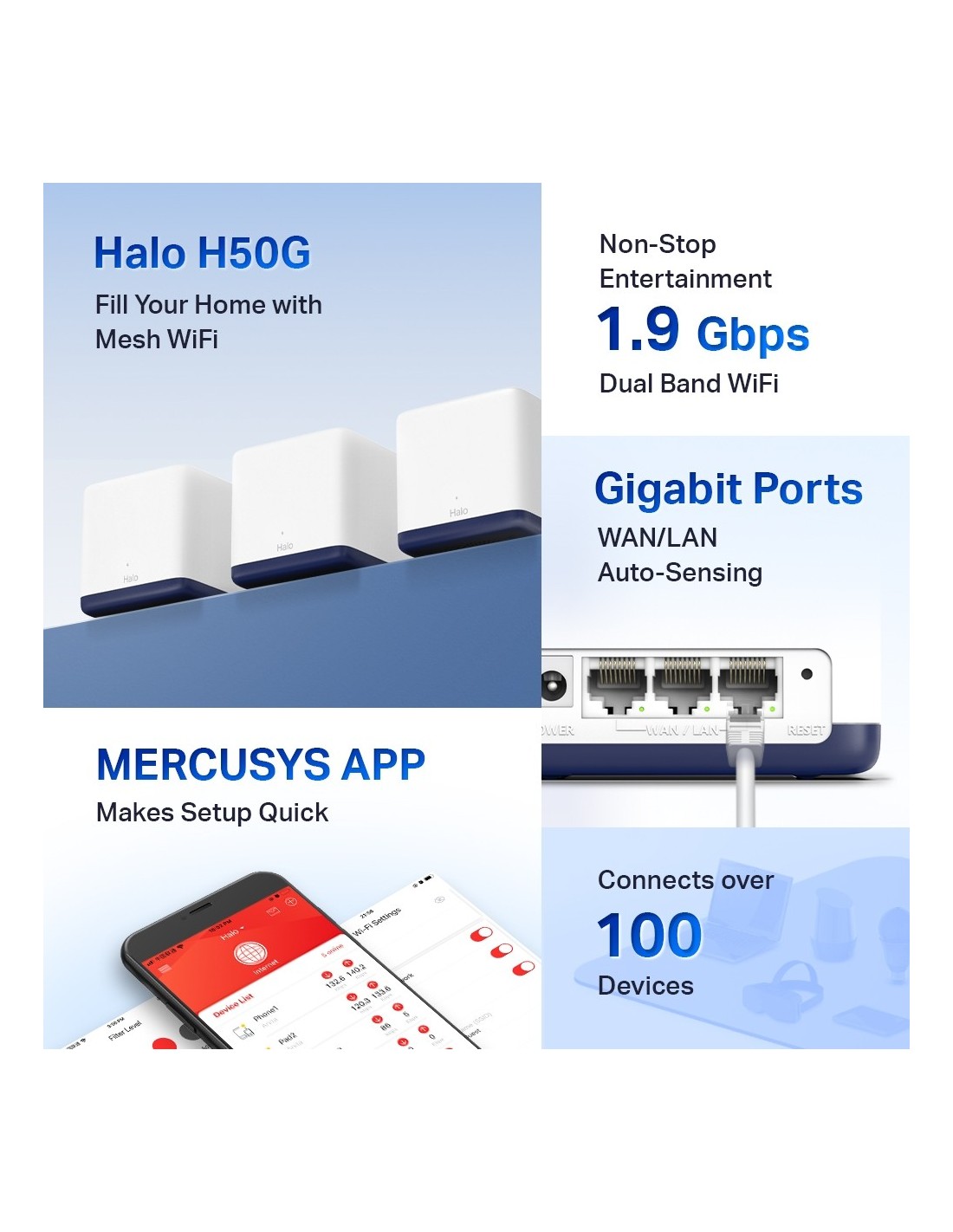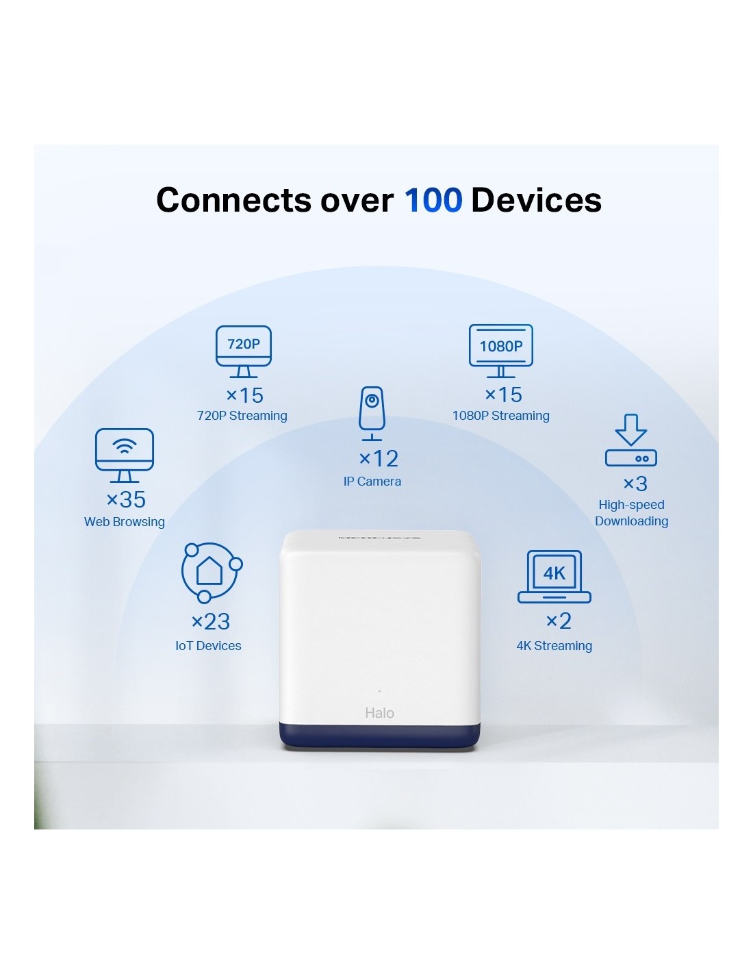 Conecta hasta 100 dispositivos. Halo conecta con todos los dispositivos del hogar de manera rápida y estable.