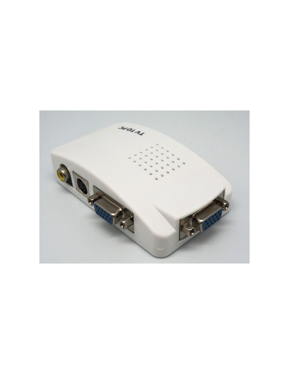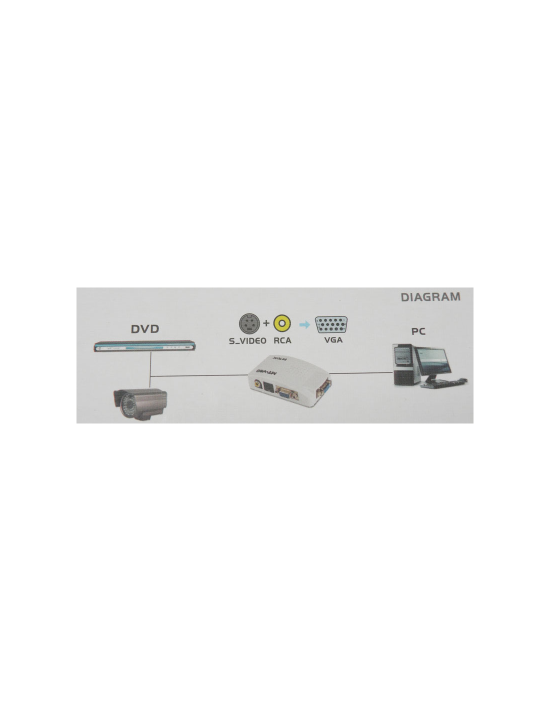 Conversor de video de AV a VGA. Convierte la señal de AV a VGA, para ver la señal de video en un monitor. Gran utilidad en seguridad para ver la imagen de las cámaras en un monitor y también para videojuegos. ENTRADA RCA, S. VHS i VGA - SALIDA VGA ALIMENTADOR 5V1A CONEXIONES INCLUIDAS.