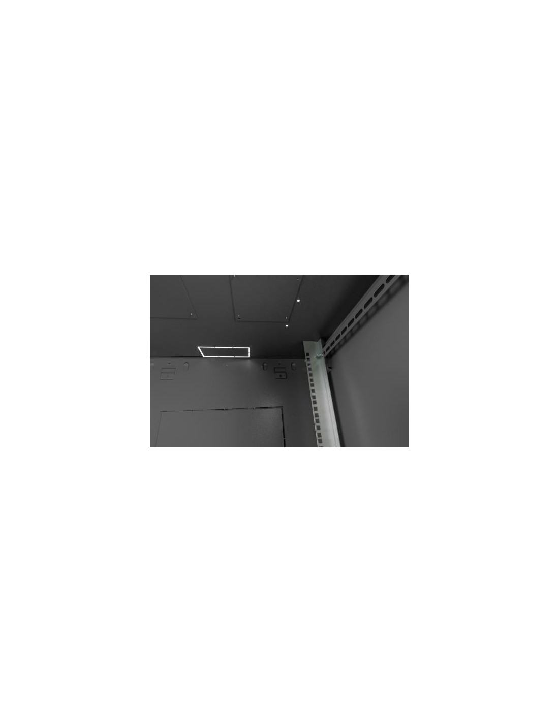 - Carriles de perfil de 483 mm (19'') instalados en la parte delantera y trasera del armario, galvanizados
