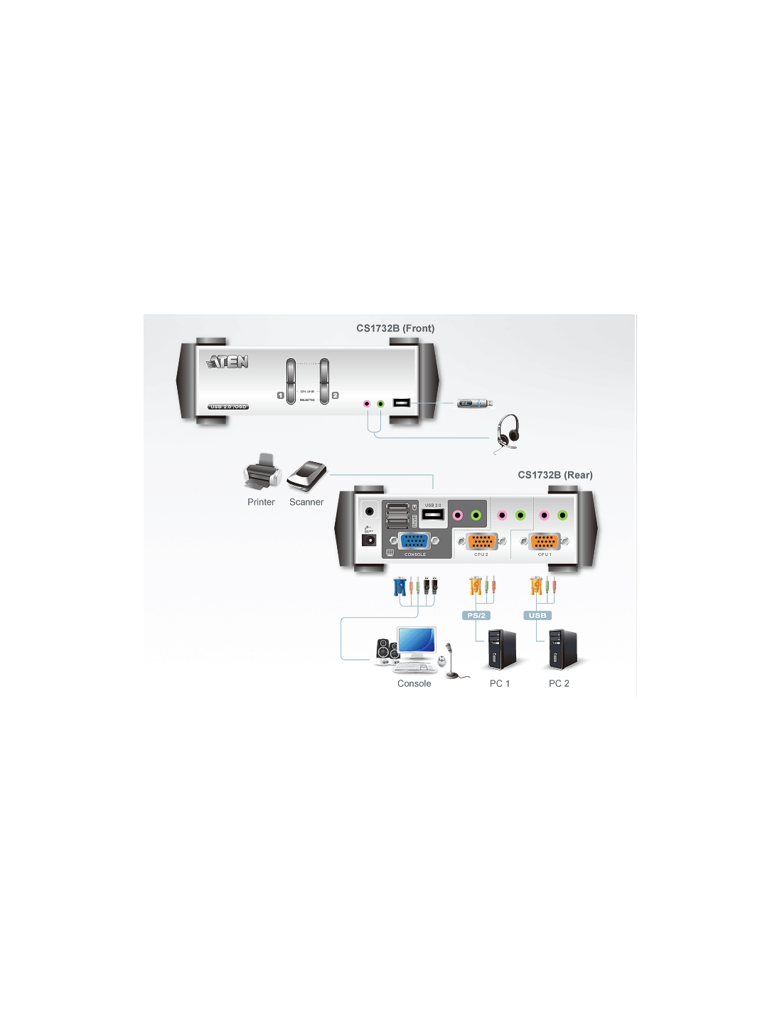 - 1 x CS1732B Switch KVMP™ de 2 Puertas USB 2.0 con OSD