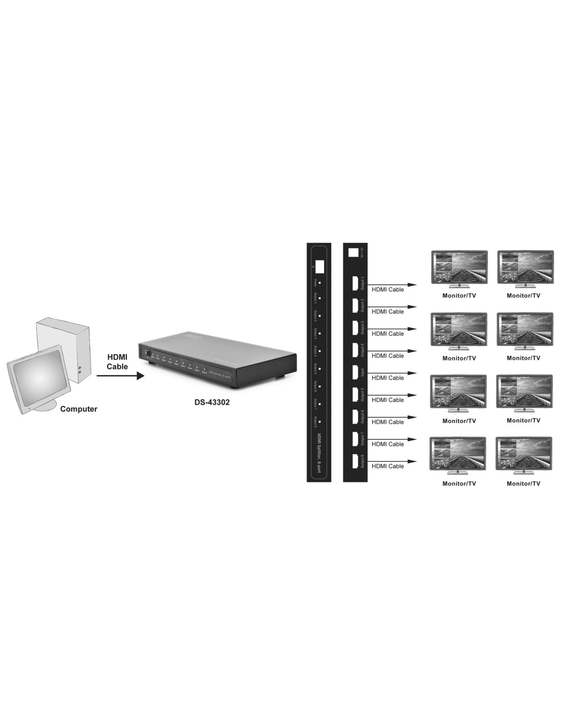 Distribuye una señal de vídeo HDMI hasta en 8 dispositivos de visualización (televisores, monitores, pantallas)