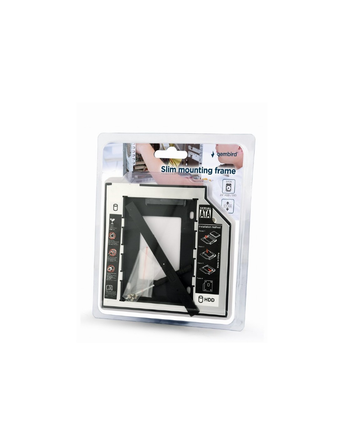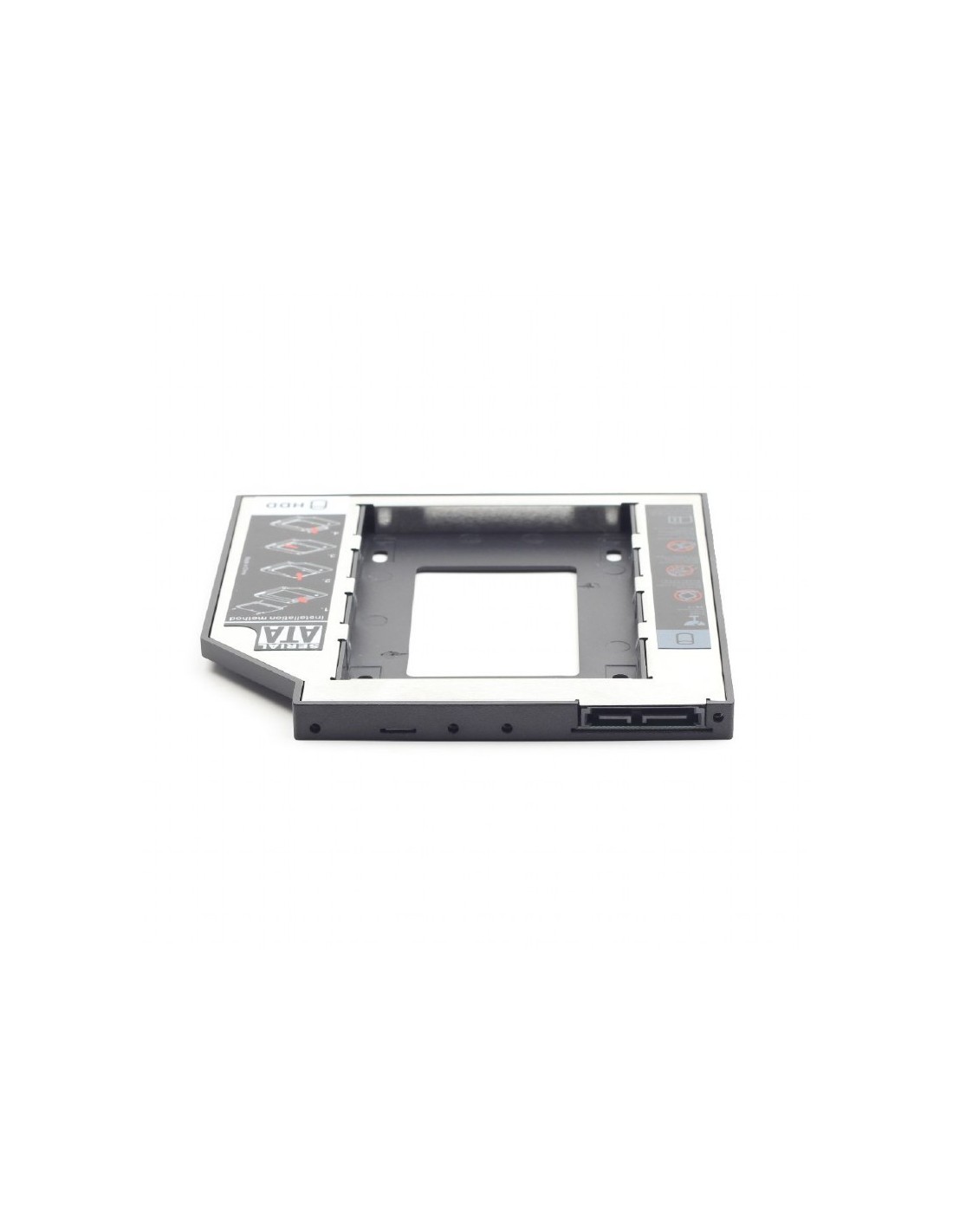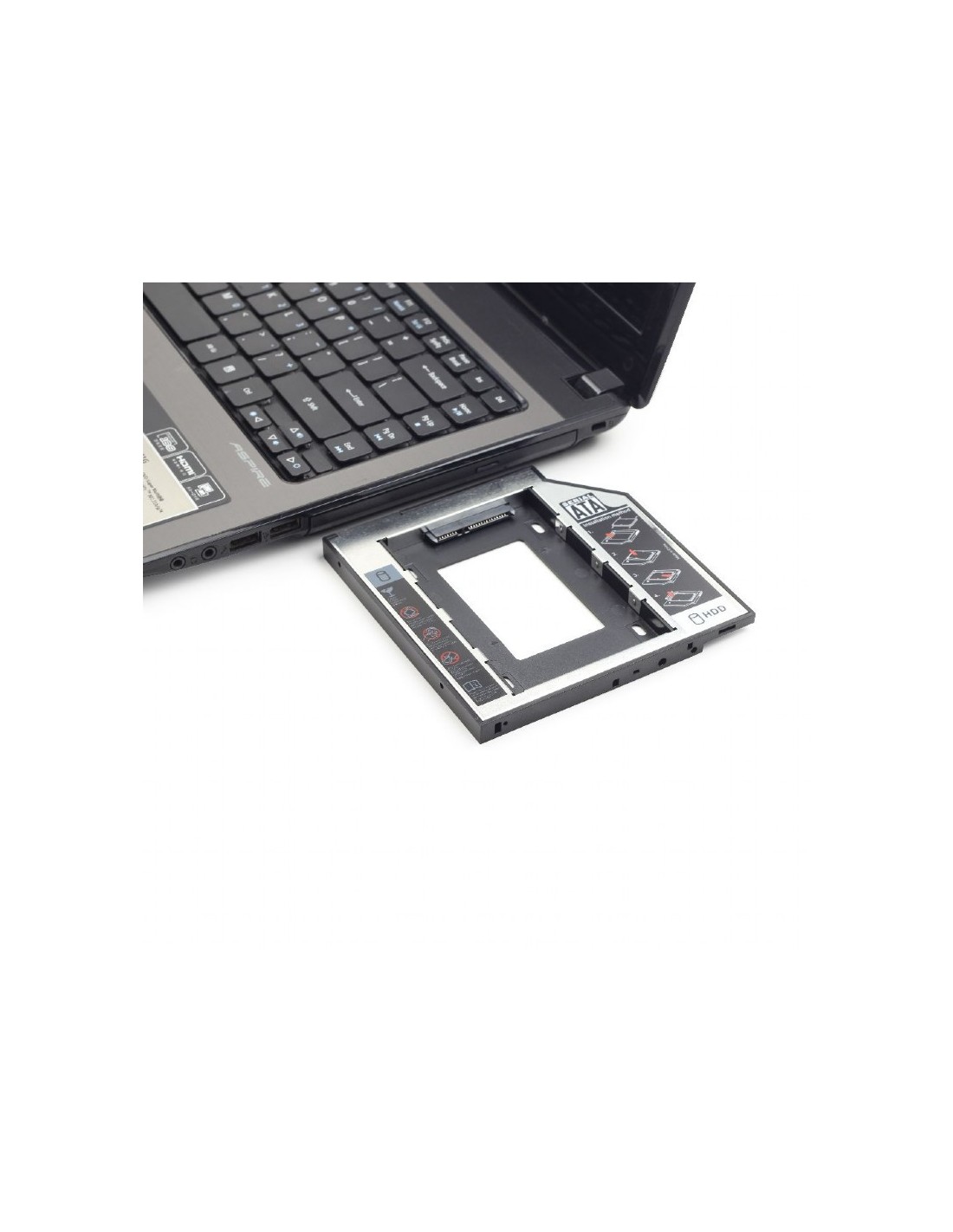 - Este marco de montaje delgada práctica se puede instalar en una delgada 5.25" ranura SATA libre en su PC o portátil delgado . Se puede instalar en lugar de la unidad de DVD - ROM. Esto le permite utilizar un disco duro SATA extra de 2.5".