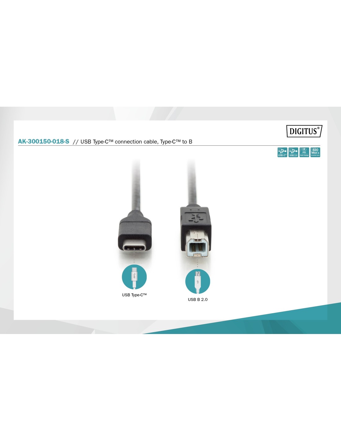 Cable de conexión USB Type-C™, Type-C™ a B, 1.8 mts.