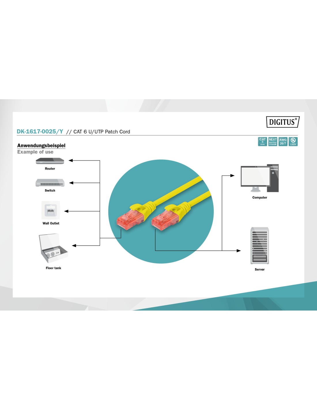 Latiguillo CAT 6 U-UTP, Cu, LSZH AWG 26/7, longitud 0,25 m, color amarillo