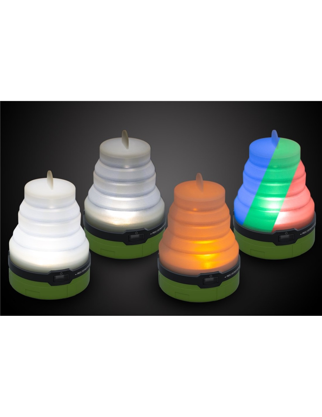 - 4 lighting modes: 100 % white light (90 lm, approx. 2.5 hrs.), 50 % white light (45 lm, approx. 5 hrs.), candlelight and RGB light (each 2 lm, approx. 60 hrs.)