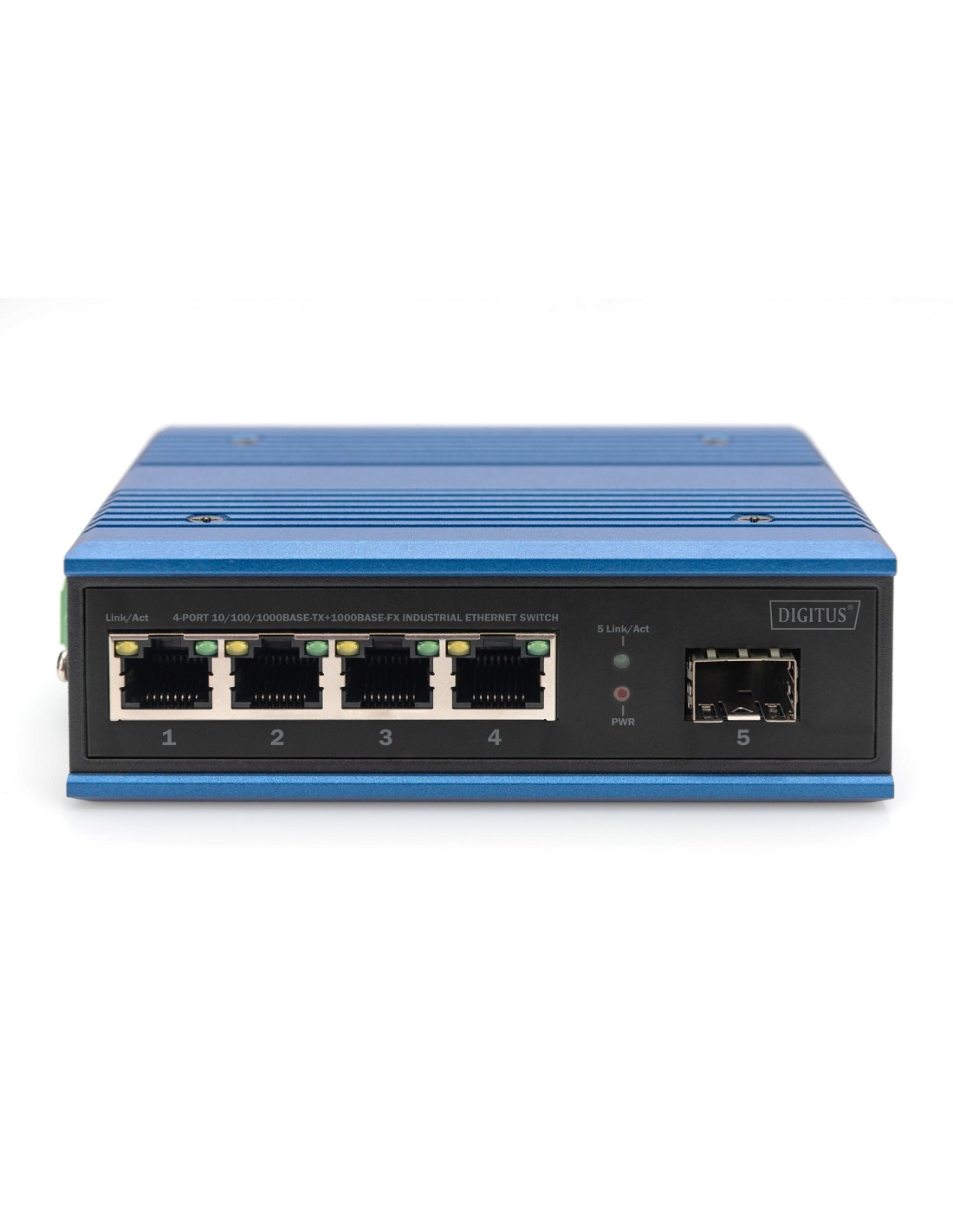 El modelo DN-651134 es un conmutador Gigabit Ethernet de 4+1 puertos, apropiado para el uso industrial (IP40), que ofrece un rendimiento de transferencia de datos sin perturbaciones en entornos industriales adversos.