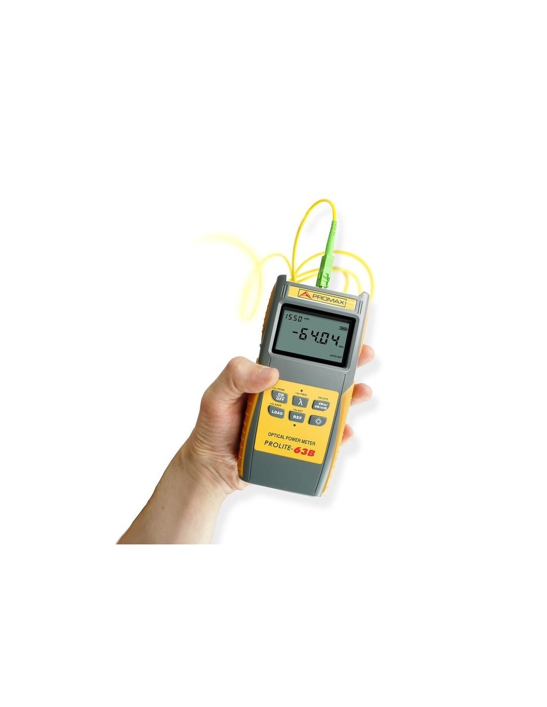El PROLITE-63B es un medidor de potencia low cost funcional e inteligente. Ya sea en un entorno de laboratorio o en redes LAN, WAN y CATV, así como en redes ópticas de larga distancia, los medidores ópticos junto a las fuentes LASER PROMAX pueden ser utilizados para identificar fibras, medir atenuación óptica, verificar la continuidad y evaluar la transmisión del enlace óptico.