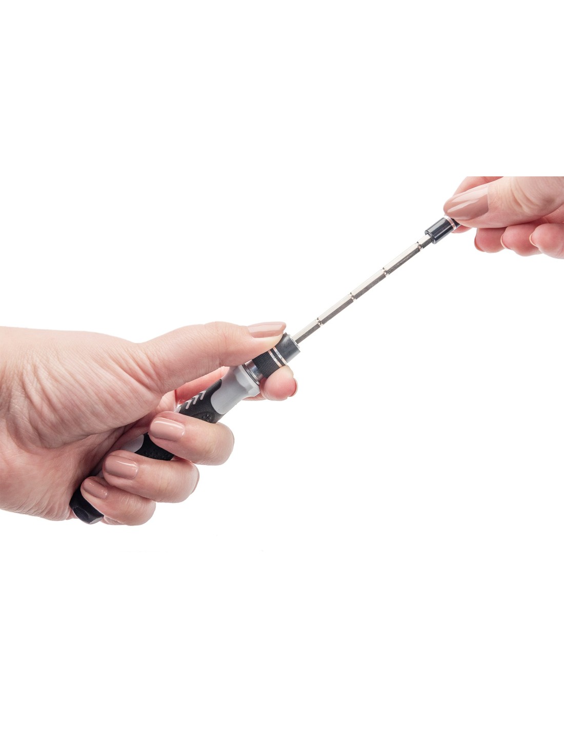 Este juego de herramientas, contiene una amplia selección de puntas de destornillador, guardadas en una caja manejable, fácil de transportar y rápidamente preparada para el uso. Las puntas de destornillador están fabricadas de acero para herramientas S2 de alta calidad, por lo cual son robustas y duraderas. Siempre está disponible la punta de destornillador adecuada, especialmente para la reparación de smartphones, la instalación de accesorios de ordenador o el modelismo.