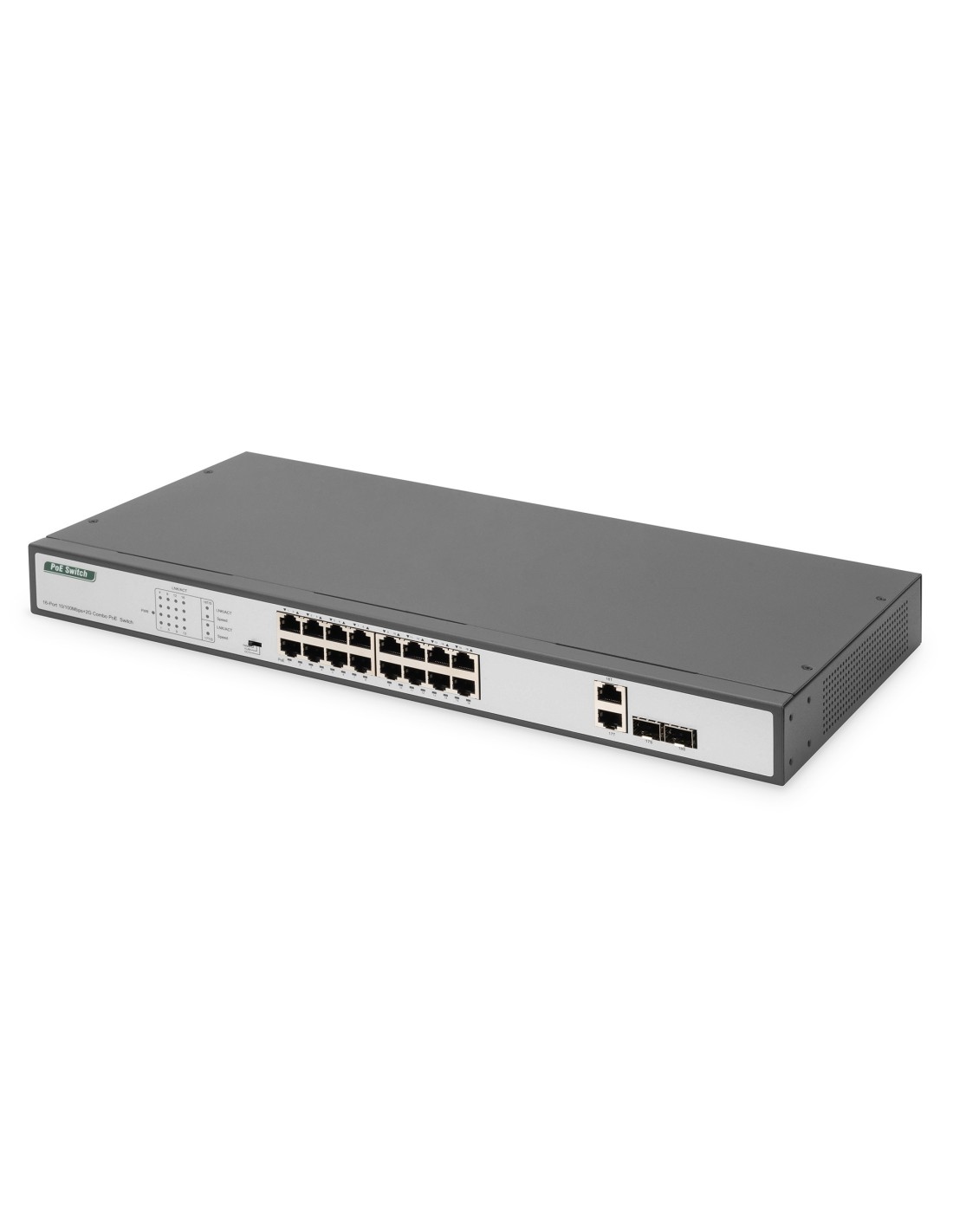 Conmutador Fast Ethernet PoE Combo de 16 puertos PoE + 2, presupuesto PoE de 250 W