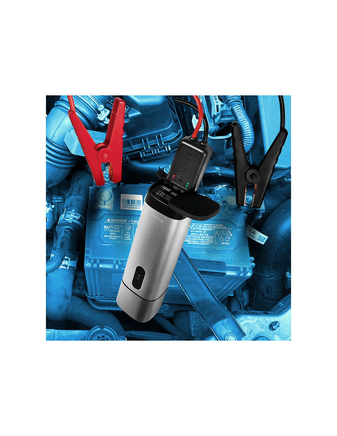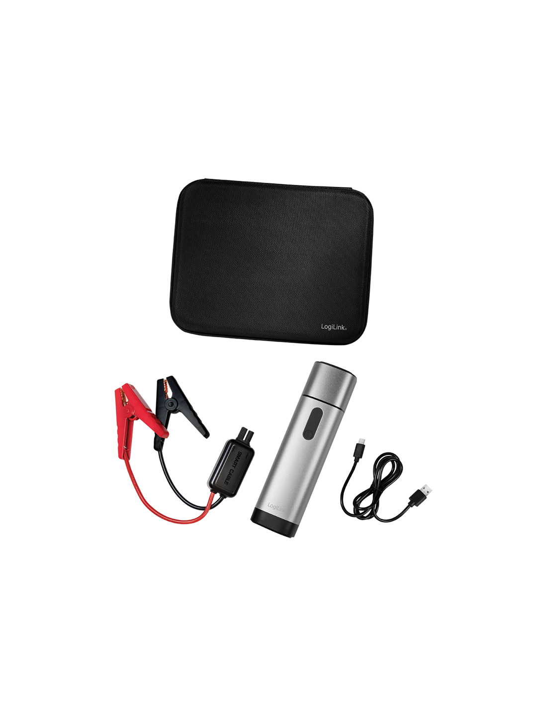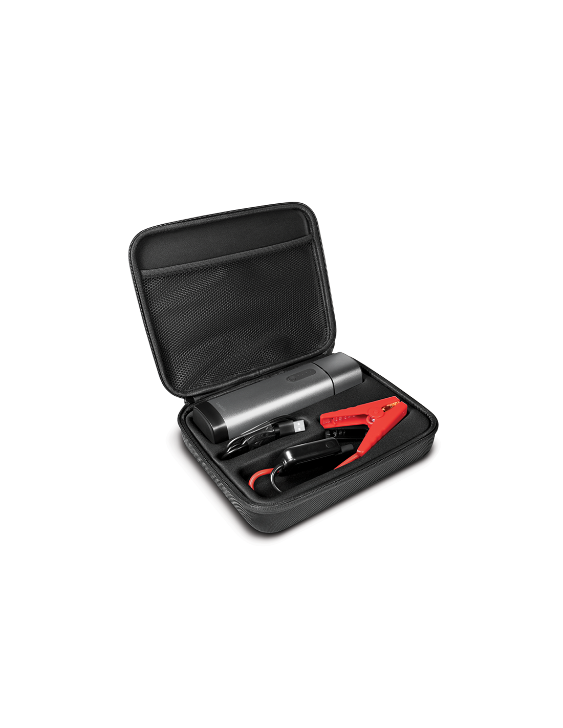 Incluye bolsa de almacenamiento, cable de abrazaderas de arranque y cable de carga USB-C
