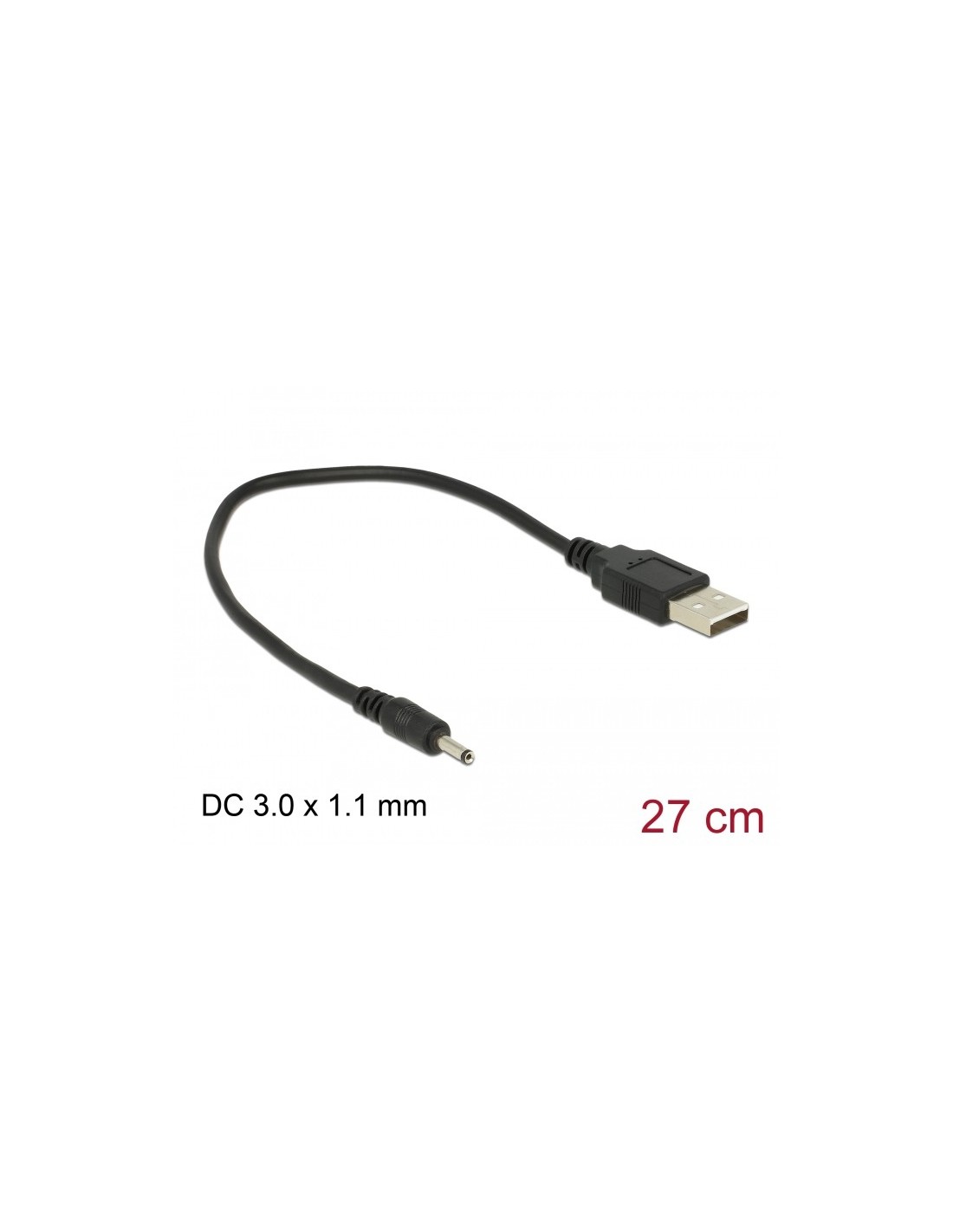 Cable USB-A Alimentación CC 3,0 x 1,1 mm macho 27 cm