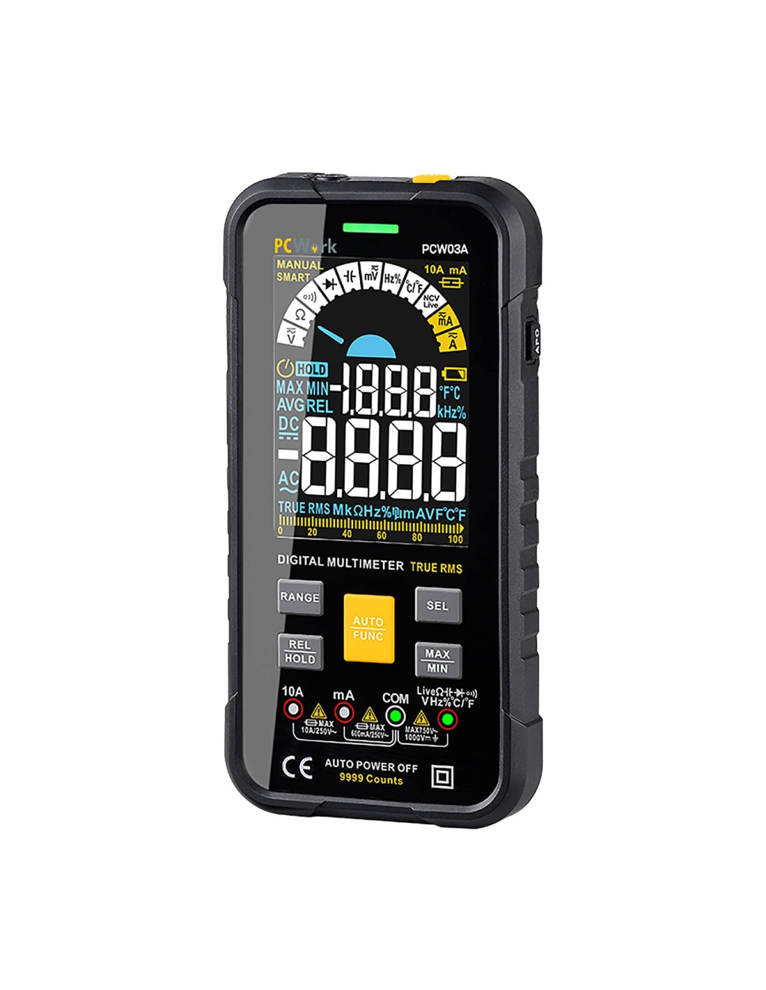 - Auto Range & smart measurement function: device automatically recognizes intended measurement (continuity, voltage, resistance) and chooses correct measurement range/function