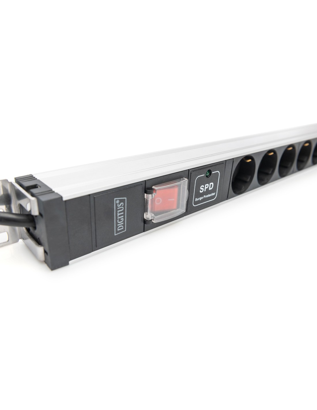 Las regletas de enchufes DIGITUS® son la solución perfecta para su armario de red o de servidores. Con vistas a la distribución de corriente, la PDU cumple los requisitos de numerosas aplicaciones en los ámbitos de TI, tecnología de redes, laboratorios, así como en el hogar. La regleta de enchufes se puede montar en el armario en posición vertical. Una protección contra sobretensiones protege a los consumidores. Según el tipo de armario existe la posibilidad de fijar la regleta de enchufes con las tomas hacia la derecha o hacia la izquierda.