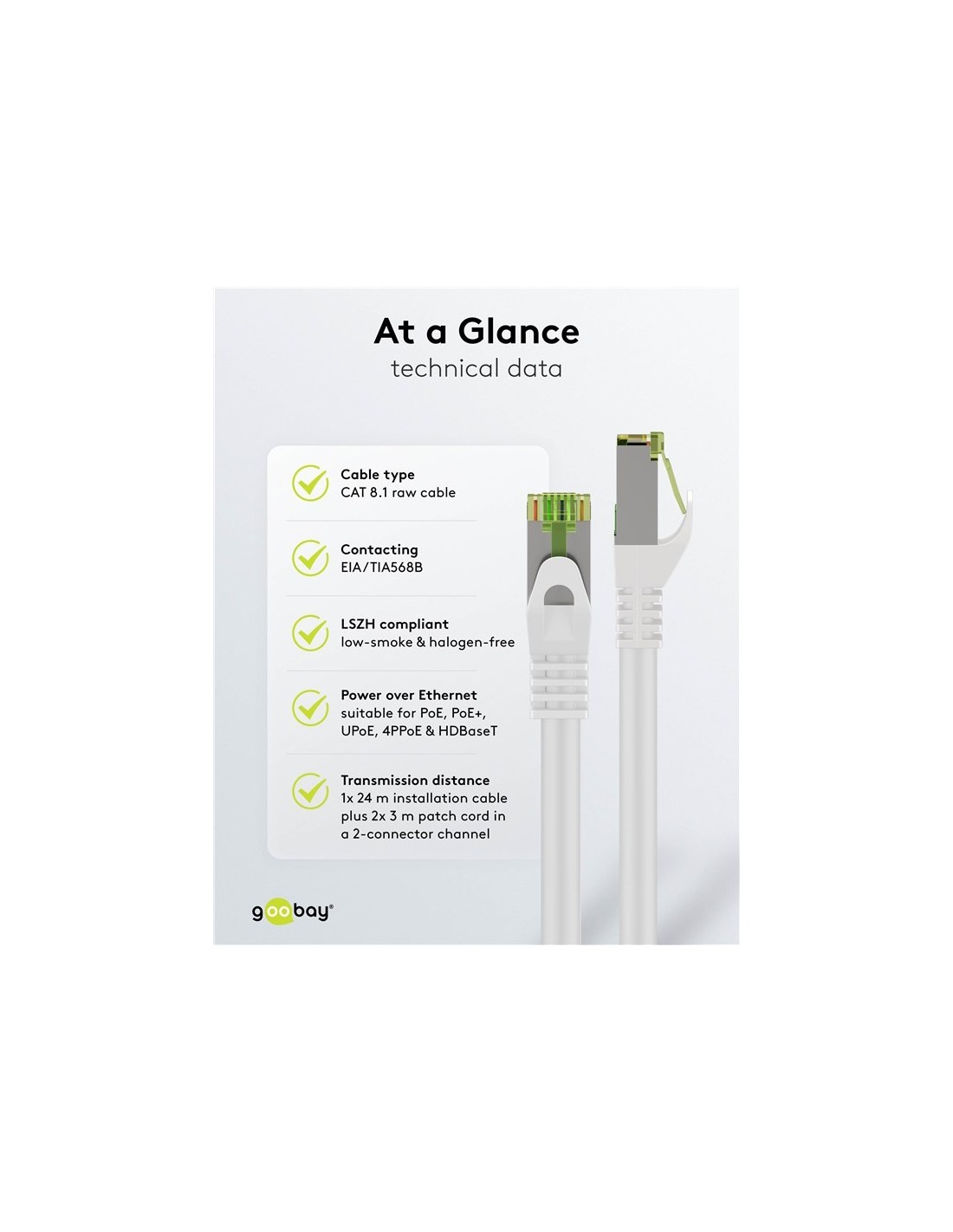 - El cable LAN CAT 8 es adecuado para alimentación a través de Ethernet (PoE, PoE+, UPoE, 4PPoE) y HDBaseT.