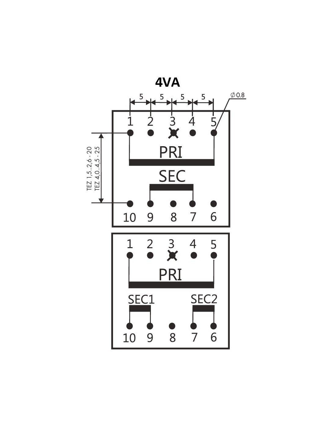 TRANSFORMADOR ENCAPSULADO PCB 2x24V 4VA 2x83mA