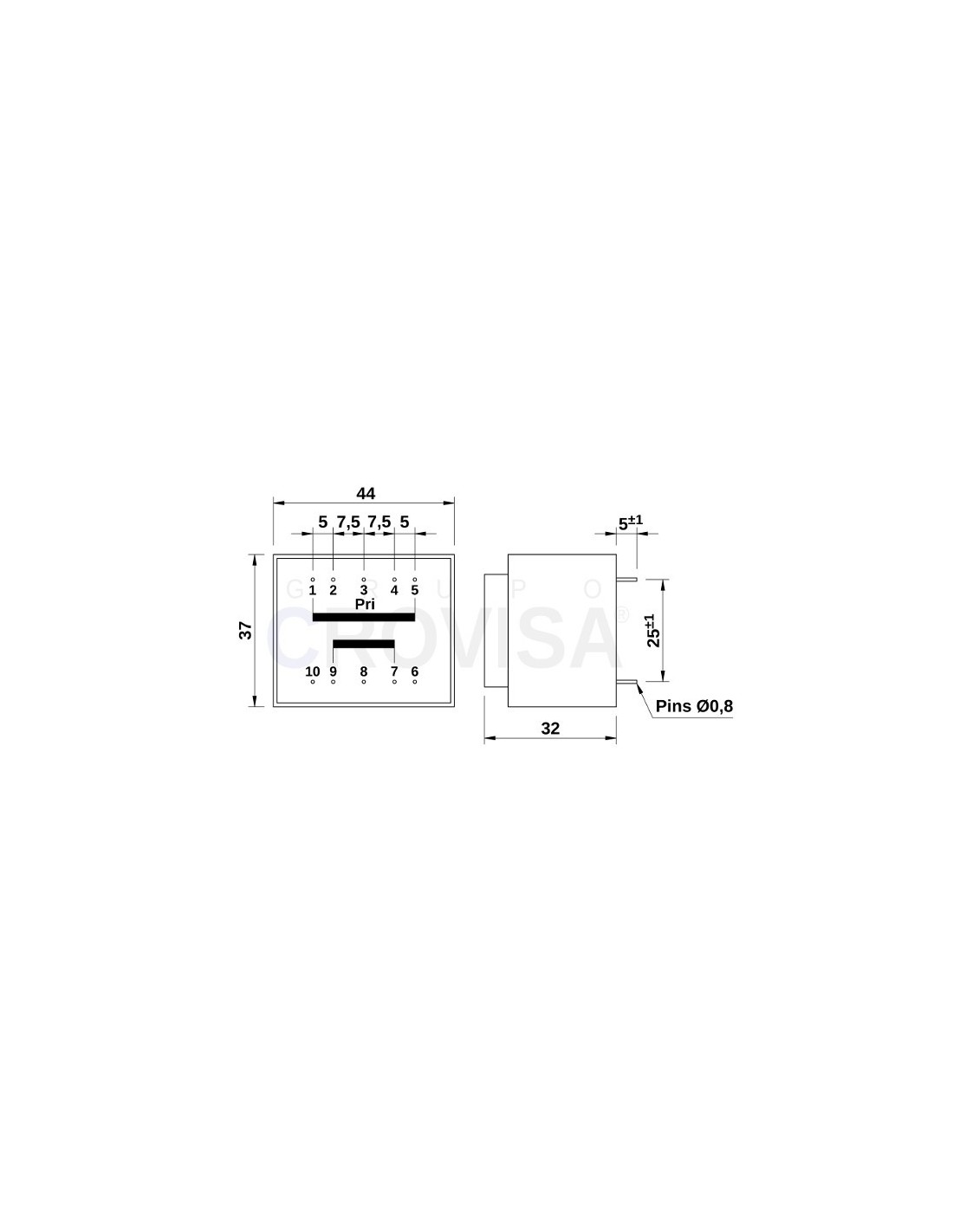 TRANSFORMADOR ENCAPSULADO PCB 12V 5VA 416mA