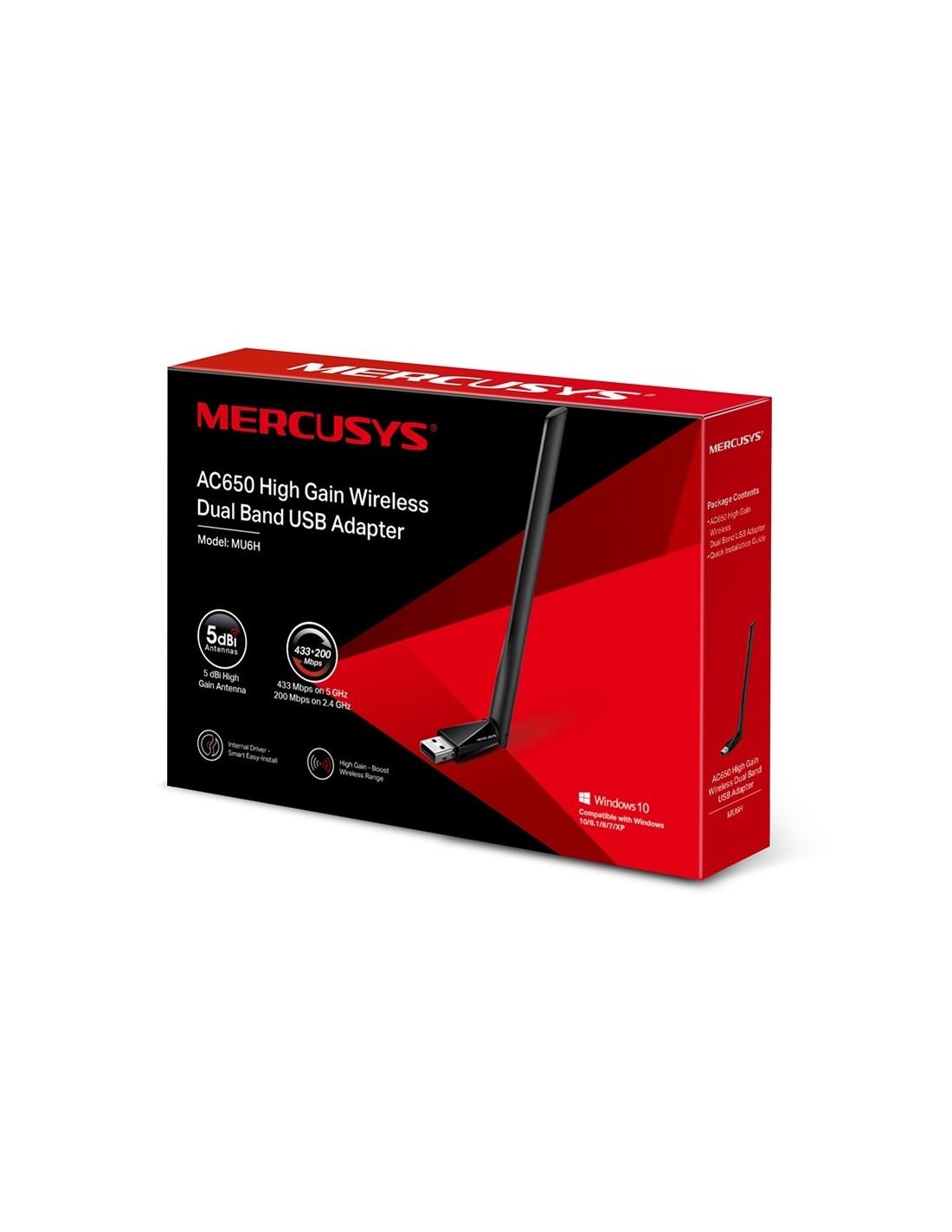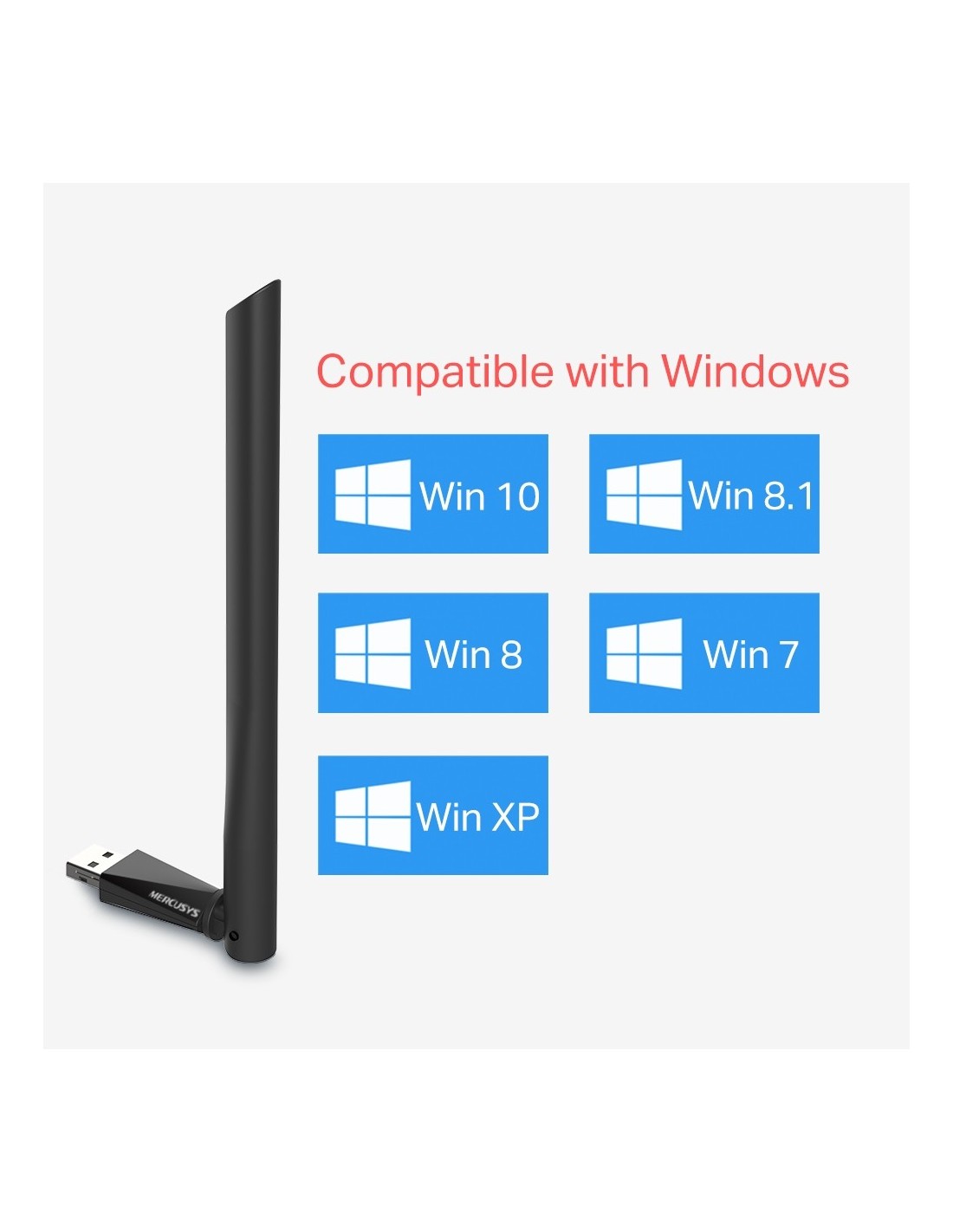 - Antena de alta ganancia: una antena de alta ganancia de 5dBi mejora en gran medida la potencia de recepción y transmisión del adaptador USB