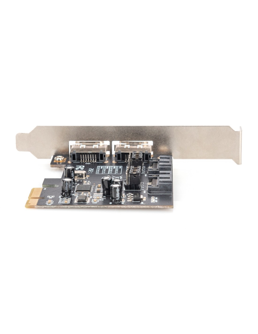 La tarjeta Digitus PCI Express SATA amplía el PC con 2 puertos SATA internos o 2 externos. En esta tarjeta se pueden conectar diferentes dispositivos, tales como SSD, discos duros, unidades de DVD, etc. La tarjeta permite el uso de los discos duros más recientes y rápidos con 6 Gbps y ofrece, a la vez, la retrocompatibilidad con unidades SATA más antiguas de 1,5 Gbit/s o 3 Gbit/s. Además, PCI Express 2.0 dobla el ancho de banda del bus PCI Express existente para un mayor caudal de datos. Cada pista PCI-Express 2.0 ofrece un rendimiento de hasta 500 MB/s.
