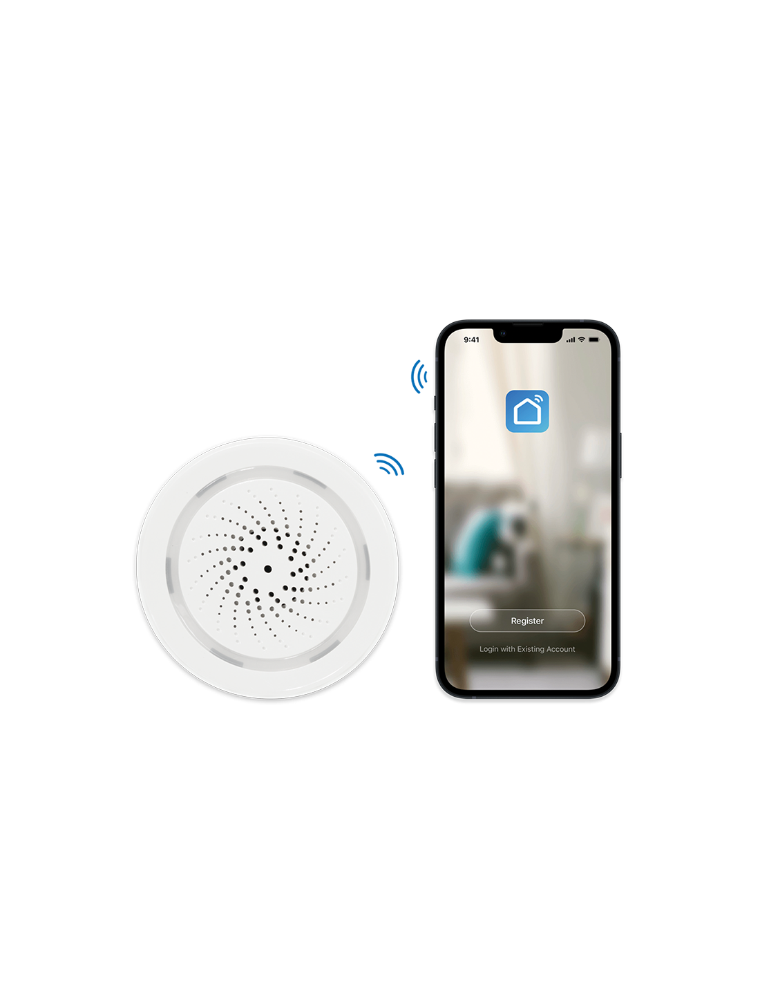 Combine la alarma con nuestros productos para el hogar inteligente, por ejemplo, con el SH0114 cuando se detectan daños por agua o cuando alguien presiona el botón SOS del SH0116