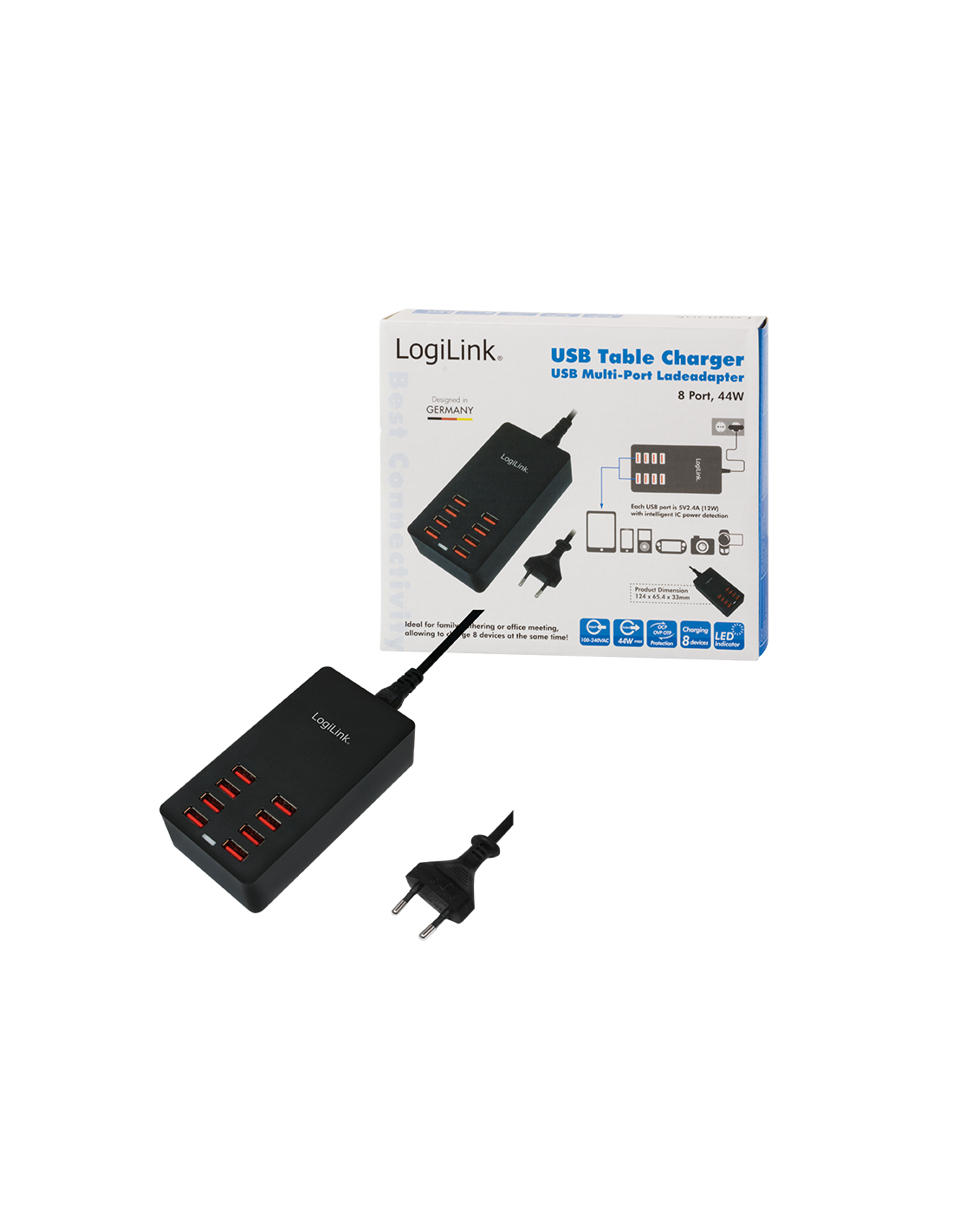 Cargador de mesa USB 8x 44W