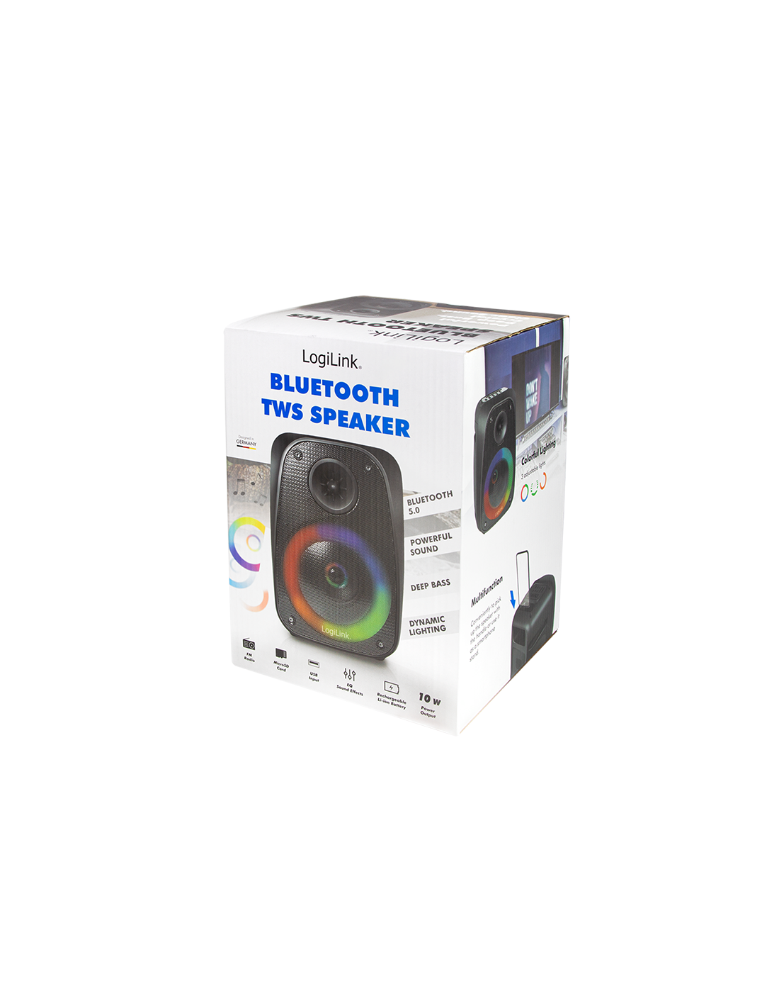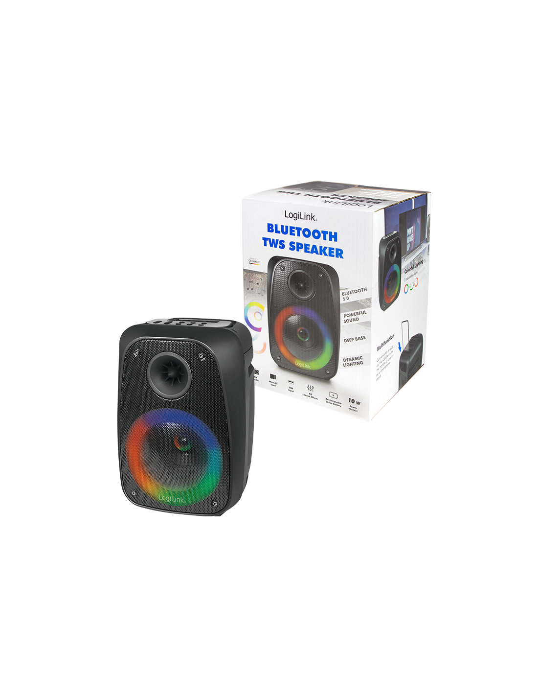 - Información del producto "Altavoz Bluetooth móvil con luz de fiesta, TWS, 10 W, negro" de LogiLink