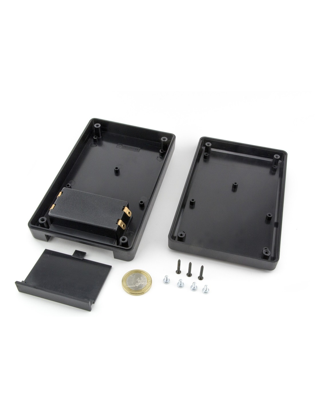 CAJA PLASTICO ABS NEGRA 144X90X30mm CON PORTAPILAS & TORNILLOS