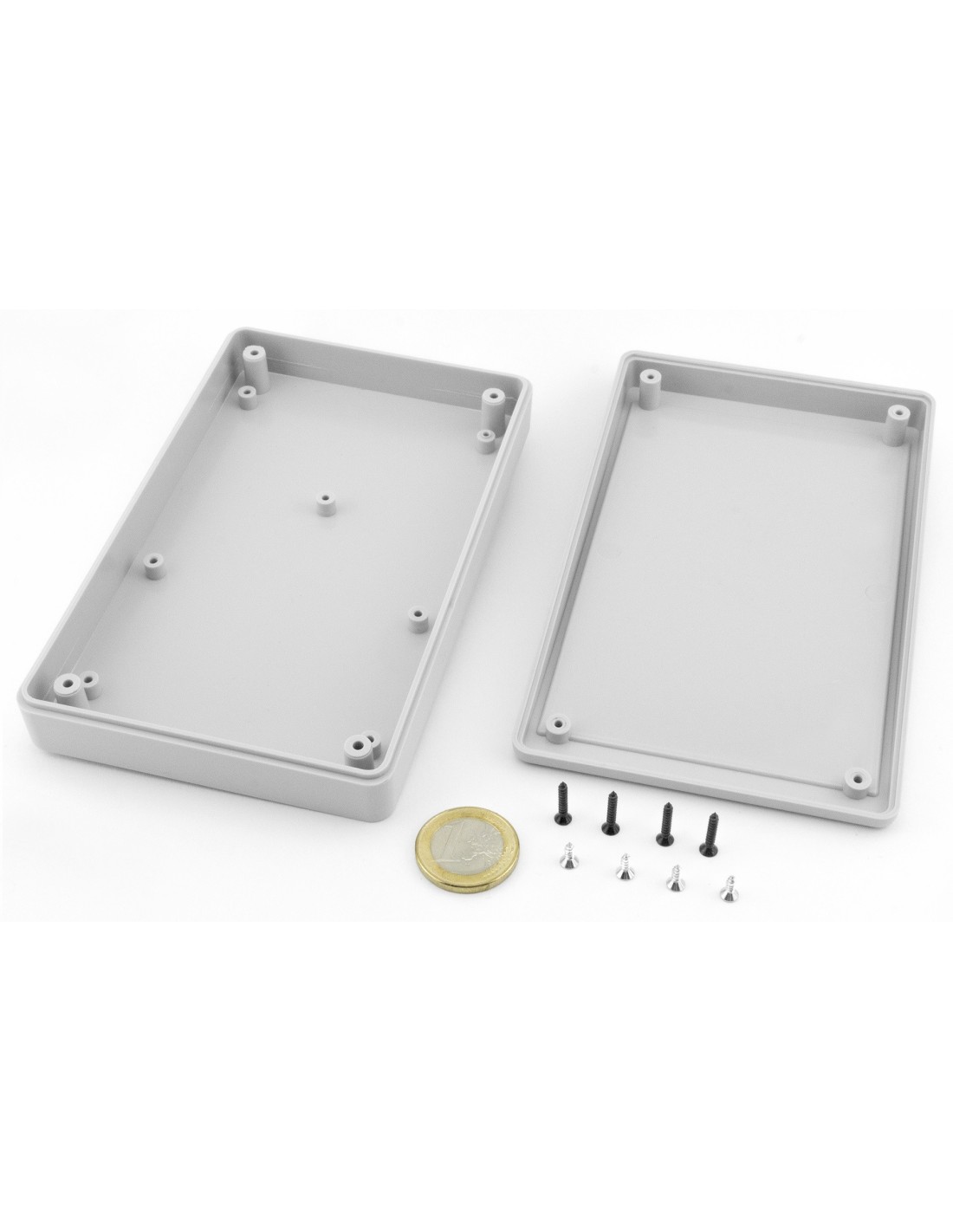 Modelo PP81, una caja fabricada en resistente ABS, este envolvente de alta calidad sorprende por su diseño moderno y su línea innovadora con la tapa ligeramente inclinada. Es ideal para instrumentos transportables que requieran disponer de un teclado de membrana de control frontal. Su práctico ensamblaje mediante 4 tornillos le seguridad para ser transportada en mano. Cada unidad incluye los tornillos de cierre y los de sujeción del circuito, así como los terminales para las baterías. Disponible en Gris (RAL 7035) o negro texturizado.
