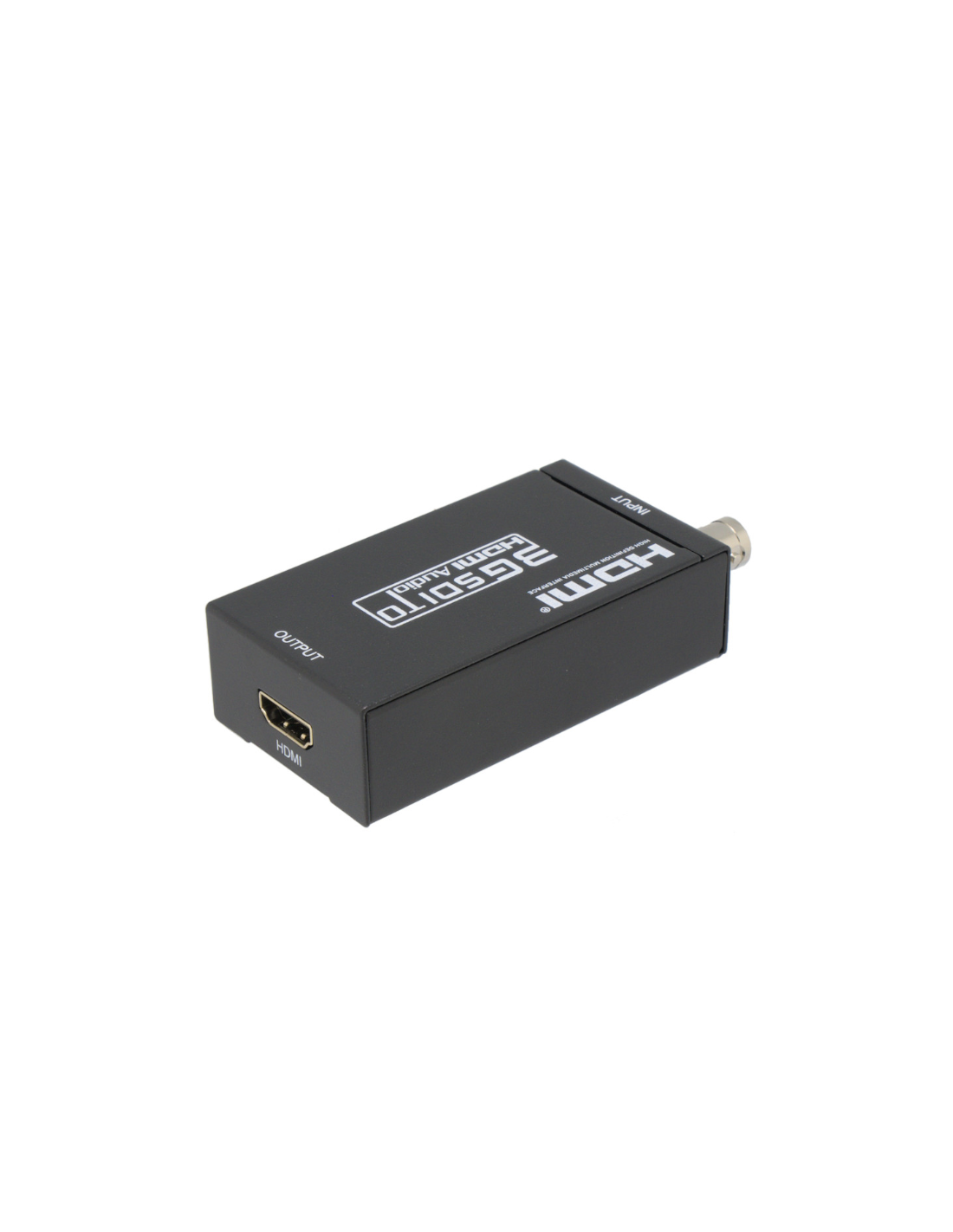 Conversor SDI a HDMI. Transforma la señal SDI, HD-SDI y 3G-SDI a HDMI para monitores. La señal de audio incrustada en la señal SDI es transferida a la salida HDMI, es decir, las señales de audio y video son transmitidas a través de un solo cable. Características: - No hacen falta drivers, conectar y funcionar. - Detecta la resoluciones SDI, HD-SDI y 3G-SDI automáticamente - Resoluciones de salida HDMI hasta 1080p@60Hz. - Soportar transmisión de audio - Peso: 150g - Tamaño: 80x41x25 mm Contenidor de la caja: 1 x Conversor BNC (SDI) a HDMI 1 x Alimentador 5V/1A
