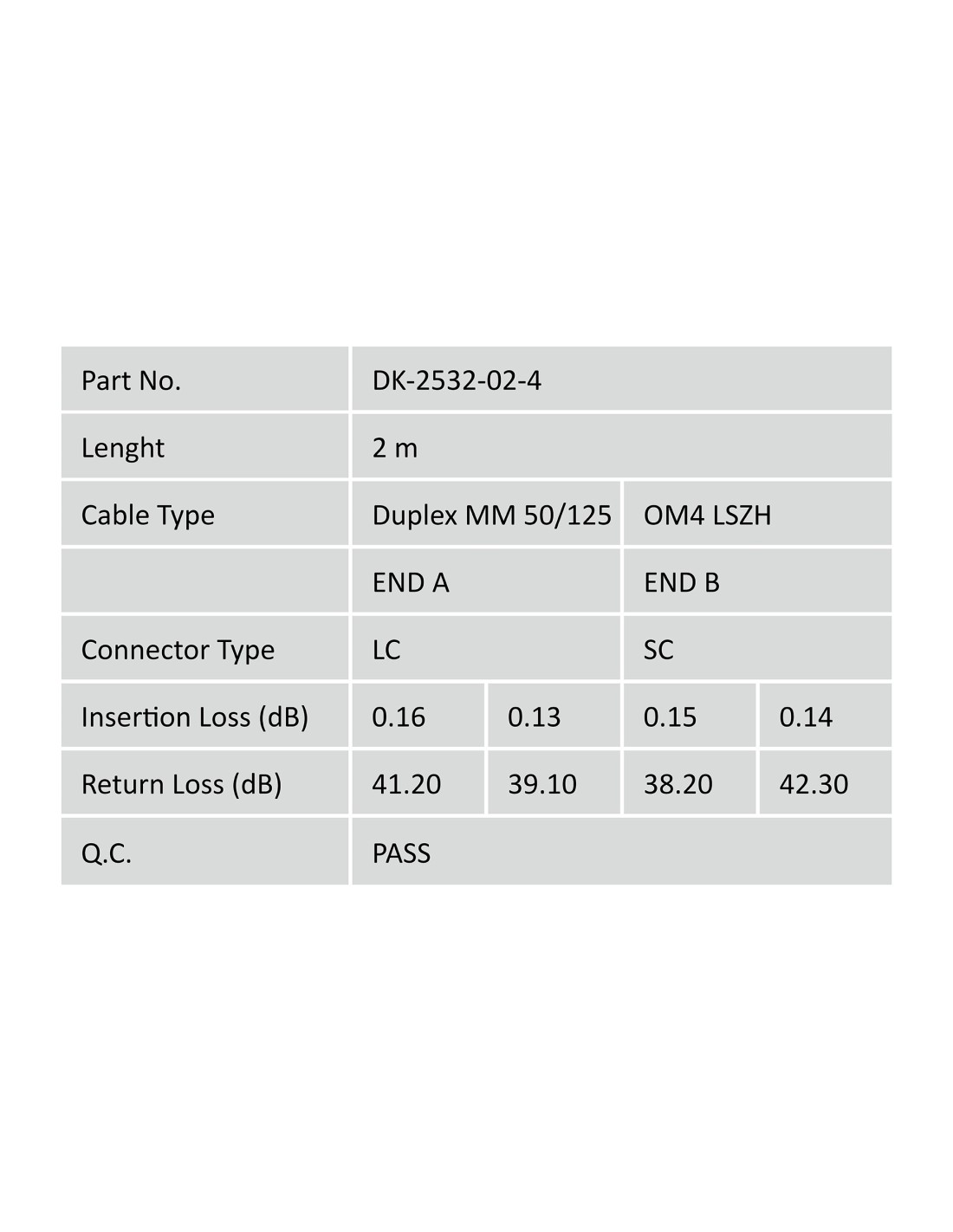 FO patch cord, duplex, LC to SC,MM OM4 50/125 µ, 2 m