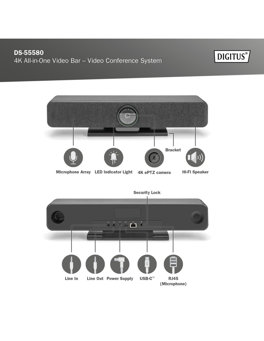 14 días de devoluciónDIGITUS Barra de vídeo 4K All-In-One - sistema de videoconferencia