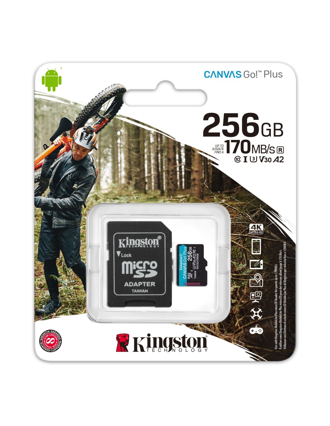 14 días de devoluciónMemoria Micro SD con adaptador SD de 256Gb. Hasta 170 MB/s en lectura y 90 MB/s en escritura