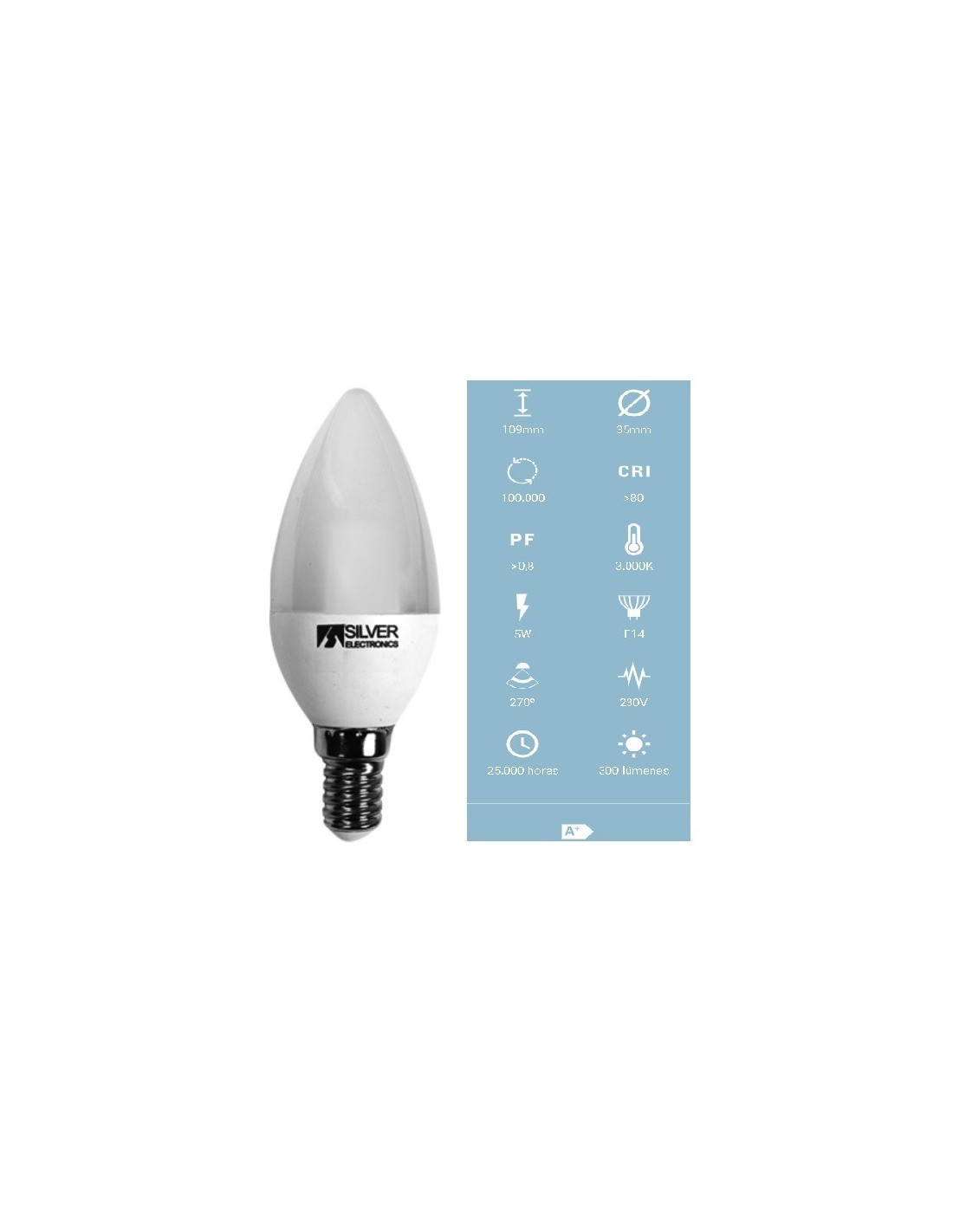 BOMBILLA LED REGULABLE 5W E14 300LM LUZ CALIDA 3000K VELA