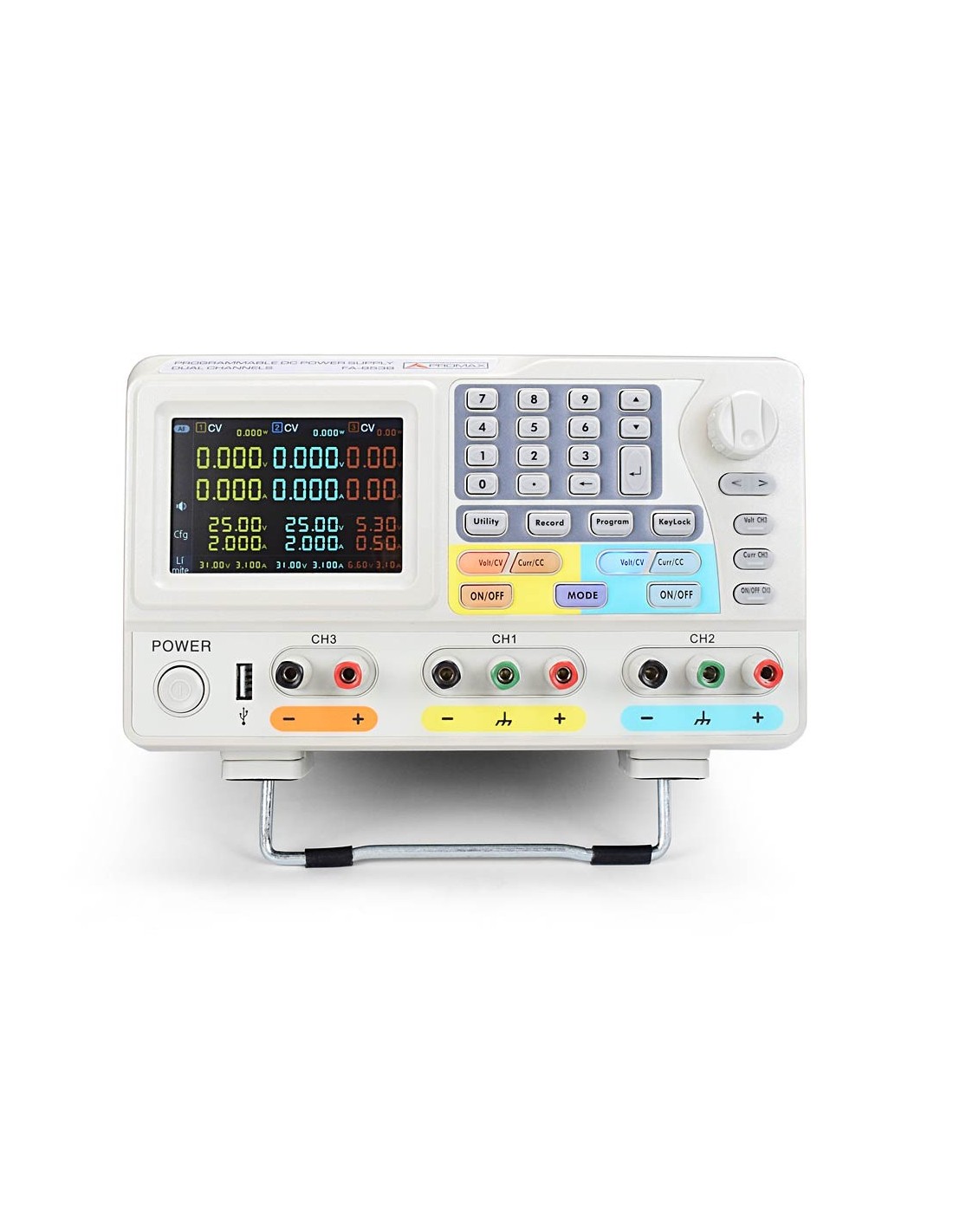 Las excelentes características de esta fuente de sobremesa comprenden registro de medidas, control remoto, compatibilidad con memorias USB, respaldo de configuración, pantalla LCD de alta resolución y un ruido y rizado extremadamente bajos. Es muy adecuada para su uso en educación gracias a su doble protección (sobretensión y sobreintensidad).