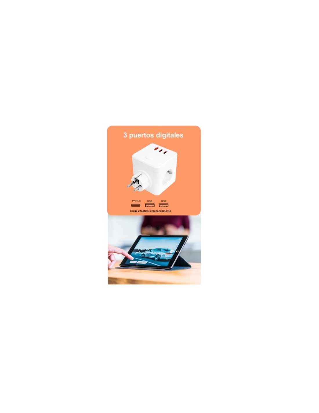 Puerto de Salida 3 x Enchufe schuko + 3 x USB