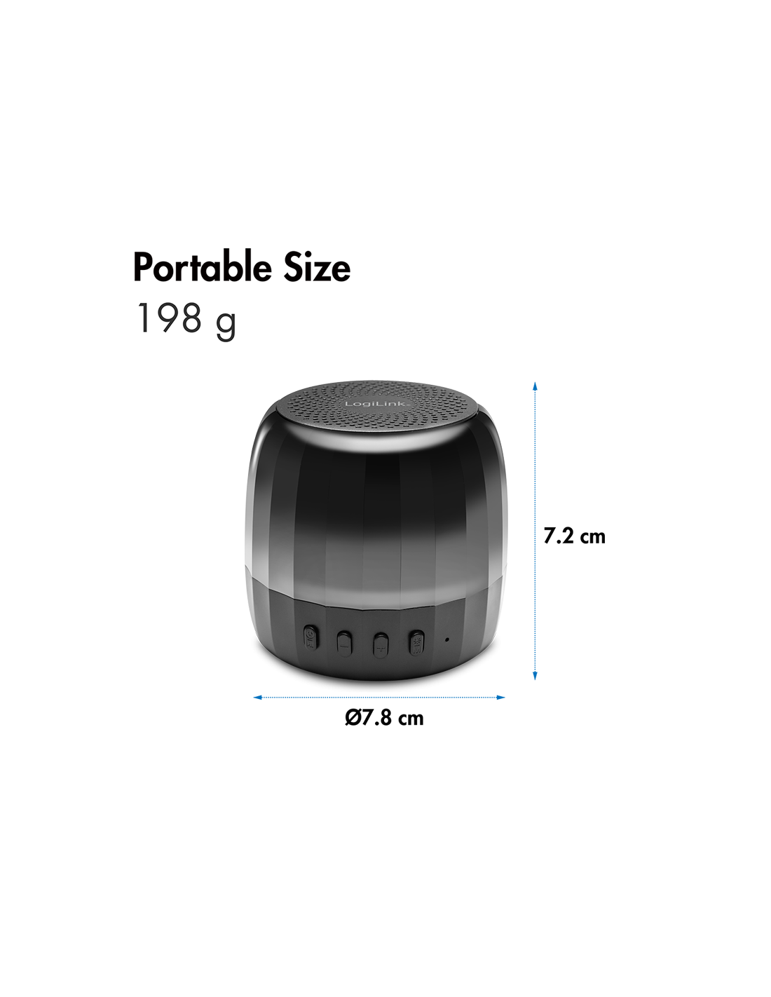 - Dimensiones: 7,8 Ø x 7,2 cm (cable de carga: 30 cm)