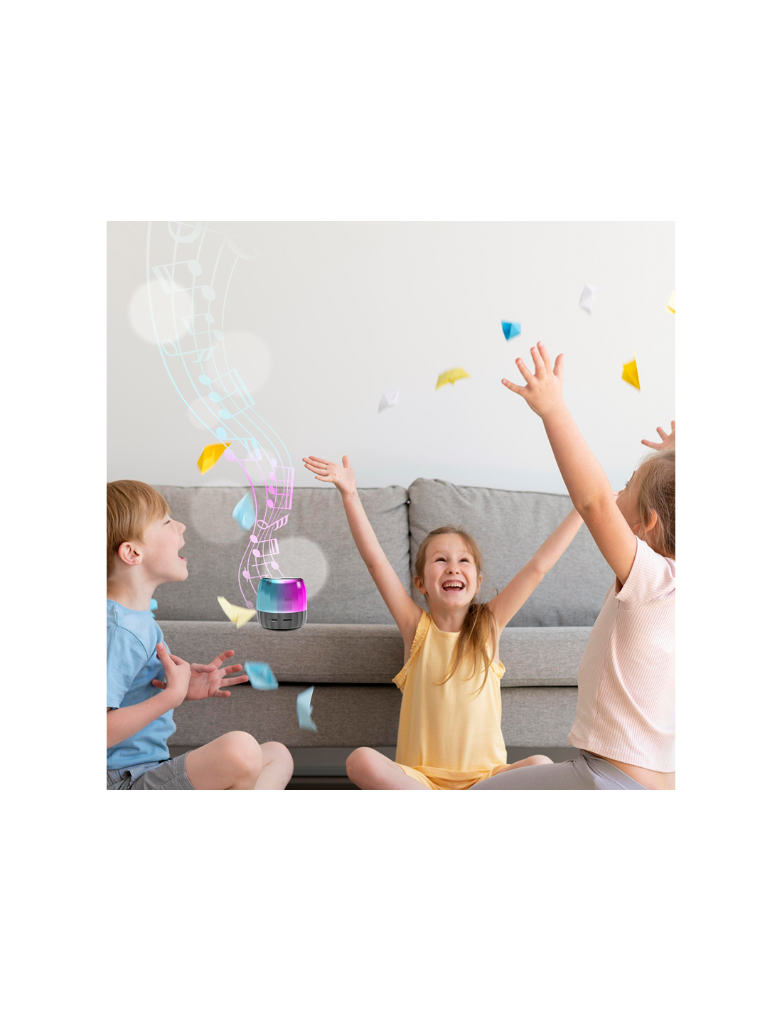 - Altavoz TWS Bluetooth 5.2 con función manos libres, ranura para tarjetas microSD y luz de fiesta