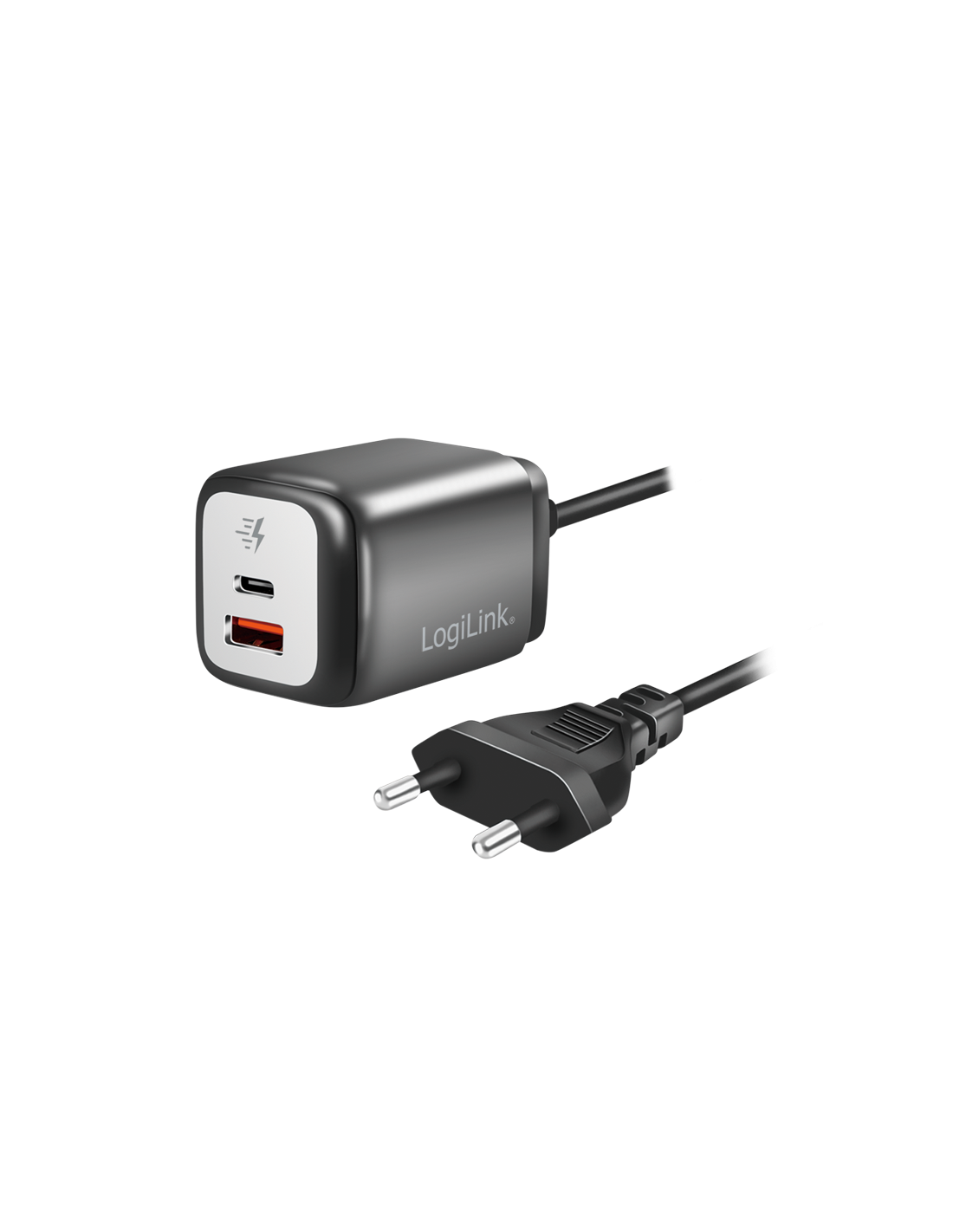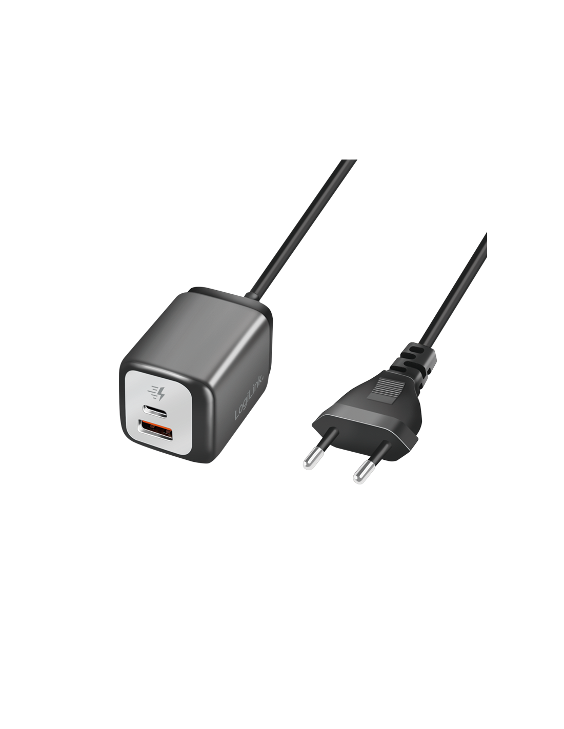 14 días de devoluciónAdaptador de toma de corriente USB dual, GaN, 1x USB-A, 1x USB-C, 30 W, cable fijo