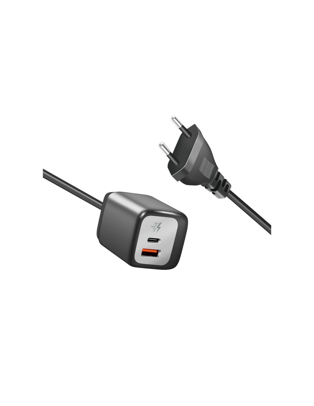 El adaptador de enchufe es una ayuda de carga ideal, incluso para enchufes de difícil acceso. Con las conexiones (USB-C y USB-A), puedes cargar fácilmente dos dispositivos simultáneamente a las velocidades óptimas. Gracias al cable de extensión instalado permanentemente, también puede enchufar el cargador en lugares de difícil acceso y seguir utilizando las conexiones cómodamente como de costumbre.