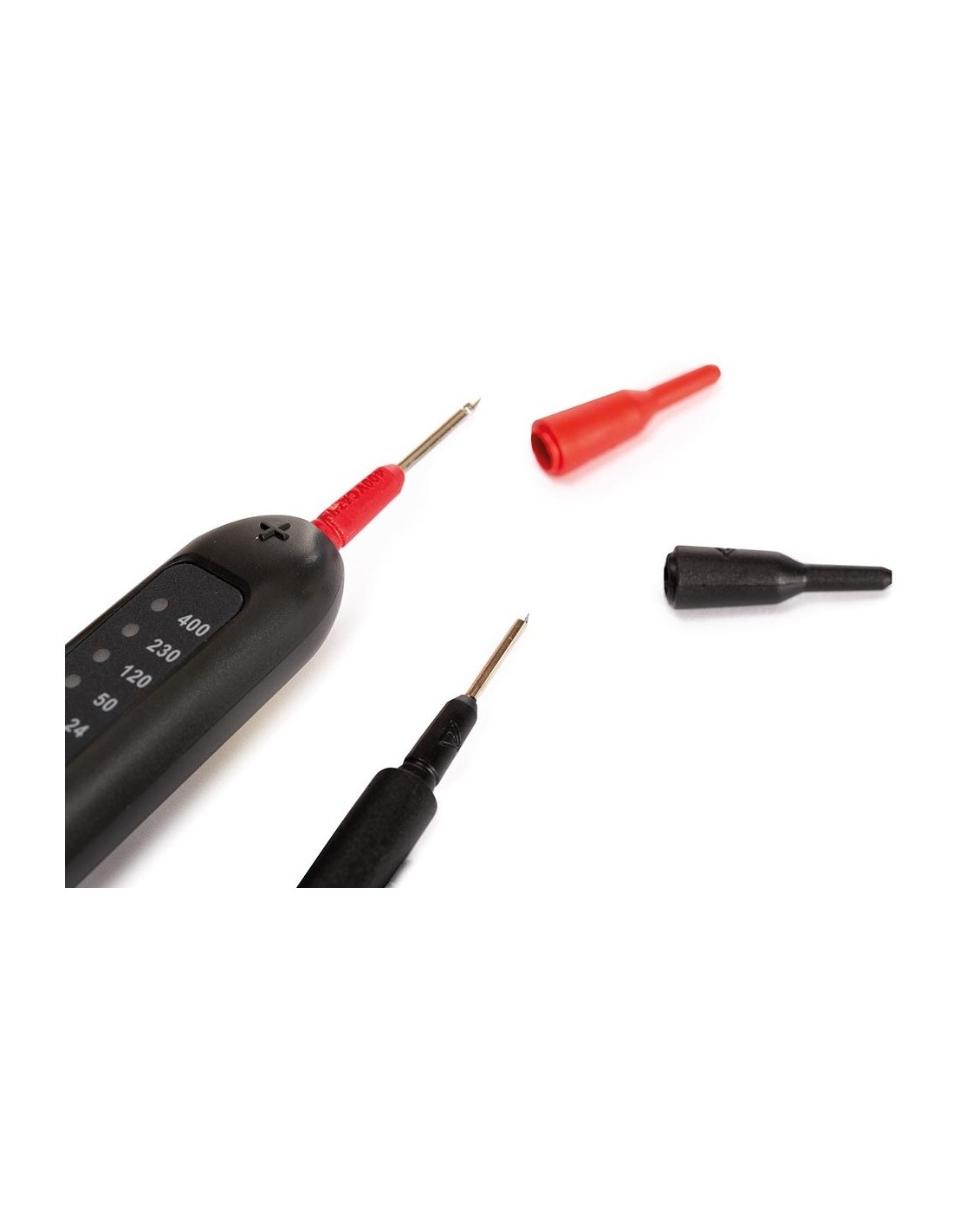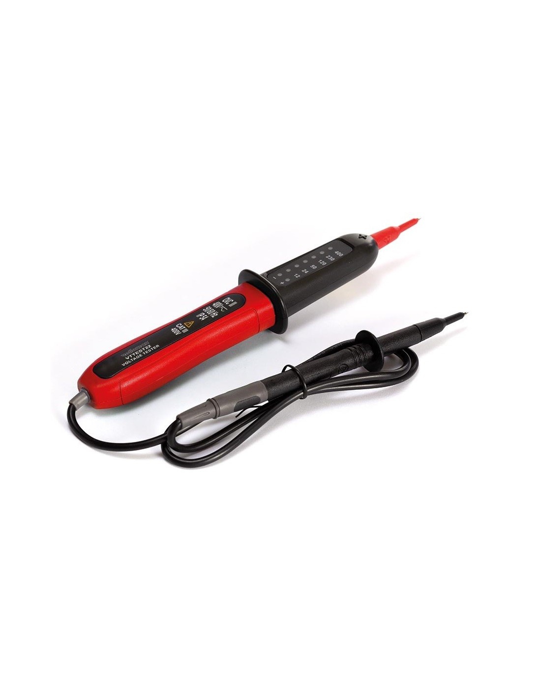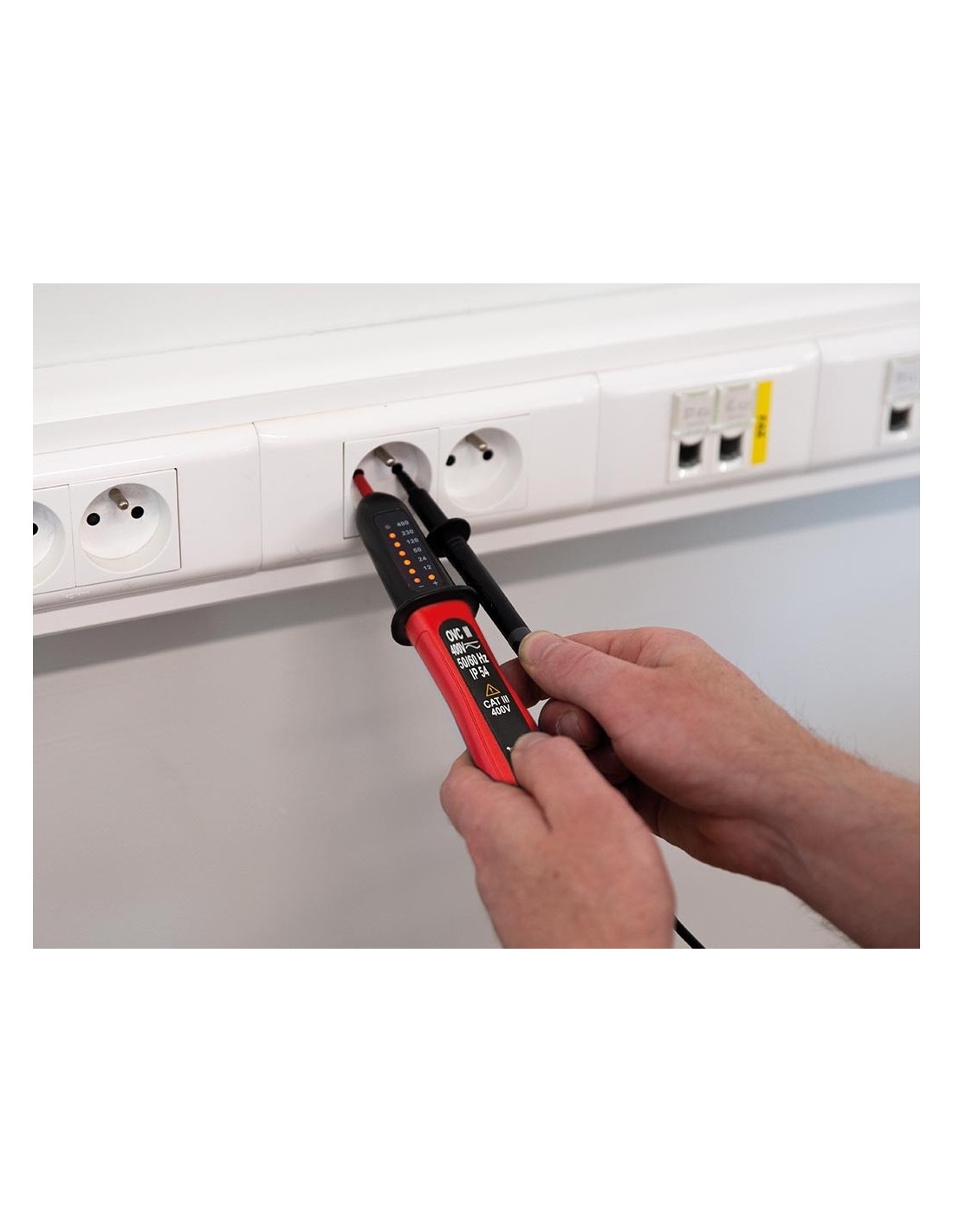 Descubra la precisión, confiabilidad y versatilidad de nuestro probador de voltaje bipolar, ideal para usar por dentro y por fuera. Este probador está diseñado para detectar voltajes de CA y CC en un rango de 12 a 400 V. El dispositivo tiene una pantalla LED intuitiva que indica seis niveles de voltaje: 12, 24, 50, 120, 230 y 400 V, tanto en AC que en CORRIENTE CONTINUA.