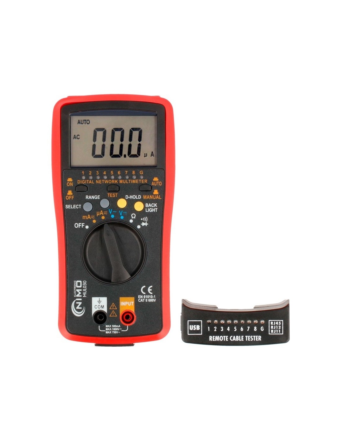 MULTIMETRO CON VERIFICADOR DE REDES RJ11-RJ12-RJ45 USB & USB MINI