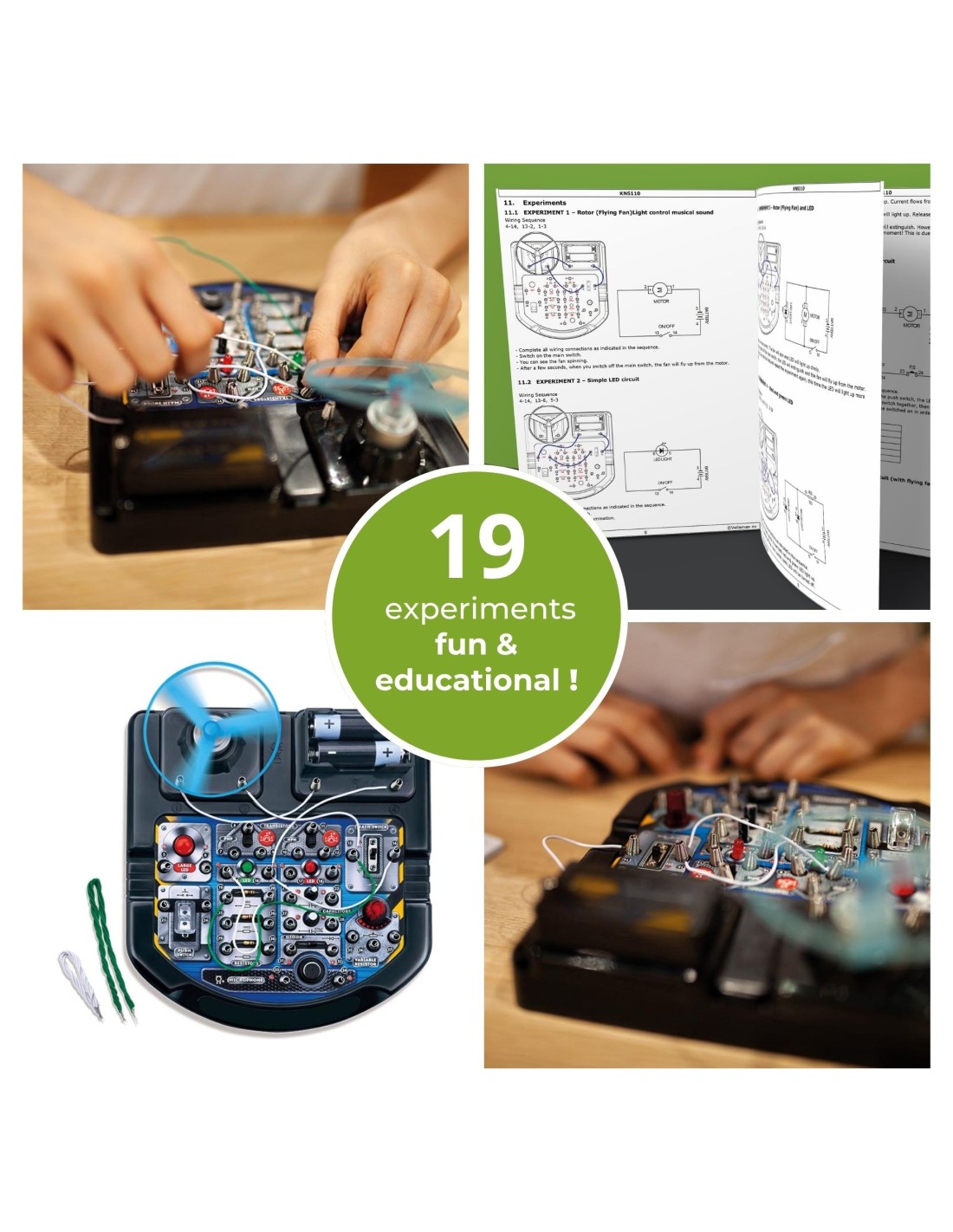 14 días de devoluciónKit de proyecto electrónico para niños a partir de 8 años, explore los fundamentos de la electrónica con 18 emocionantes experimentos, diversión lúdica educativa e interactiva, LED, ventilador y sonido