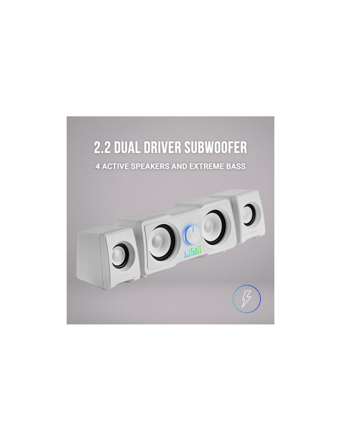 SUBWOOFER 2.2 DUAL DRIVER: Altavoz con sistema de subwoofer 2.2 DUAL DRIVER con 4 altavoces activos para un rendimiento de BASS extremo.